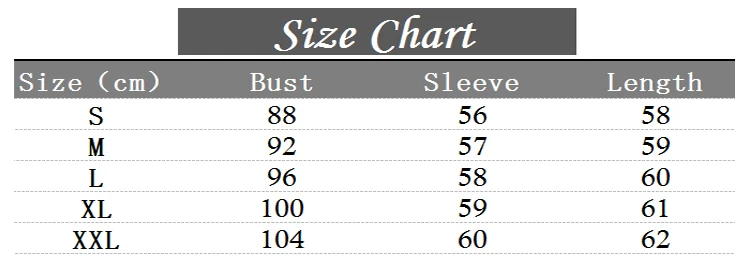 Размер XL: обхват груди 100 см; Рукав 59 см; длина 61 см.