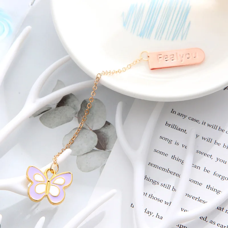 Милые закладки с бабочками и кроликом, креативные металлические подвески, закладки для книг, подарок для девочек, школьные канцелярские принадлежности