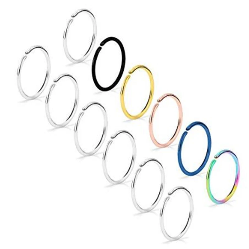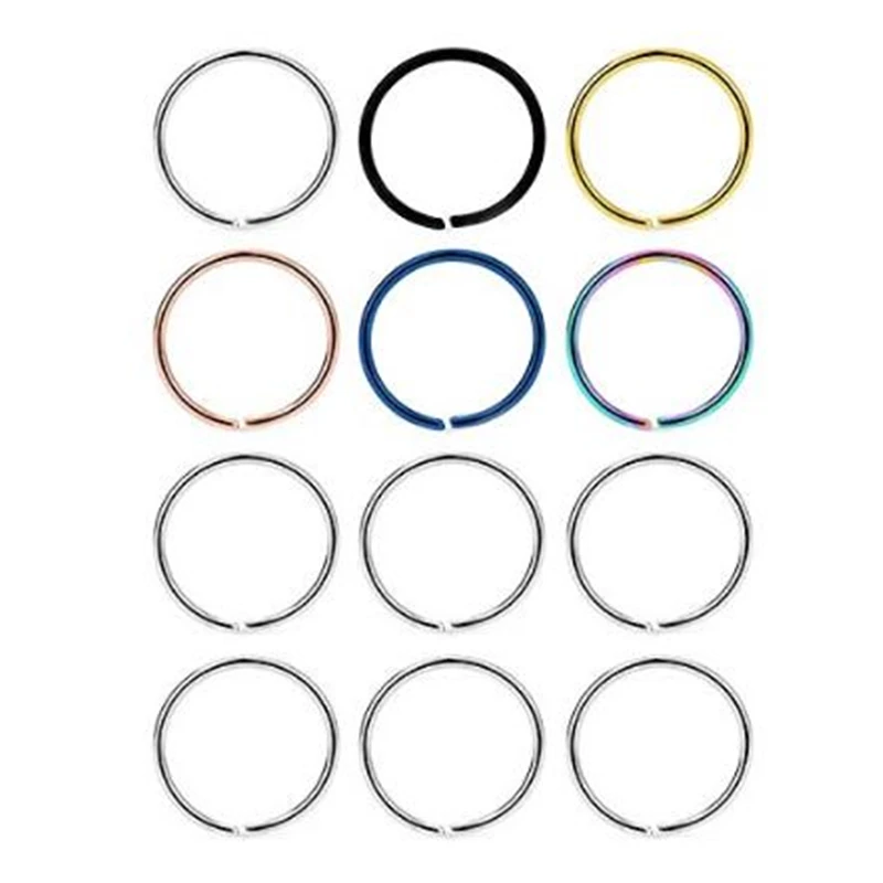 - Один заказ включает в себя 12 шт 316L хирургические стальные Гибкие Кольца для носа с круглыми концами (не тонко Обрезанные края), можно использовать в качестве поддельного искусственного зажима на перегородке, кольца для носа и настоящие кольца для пирсинга носа, Экономичная Цена с модным дизайном подарит вам красочный день.
