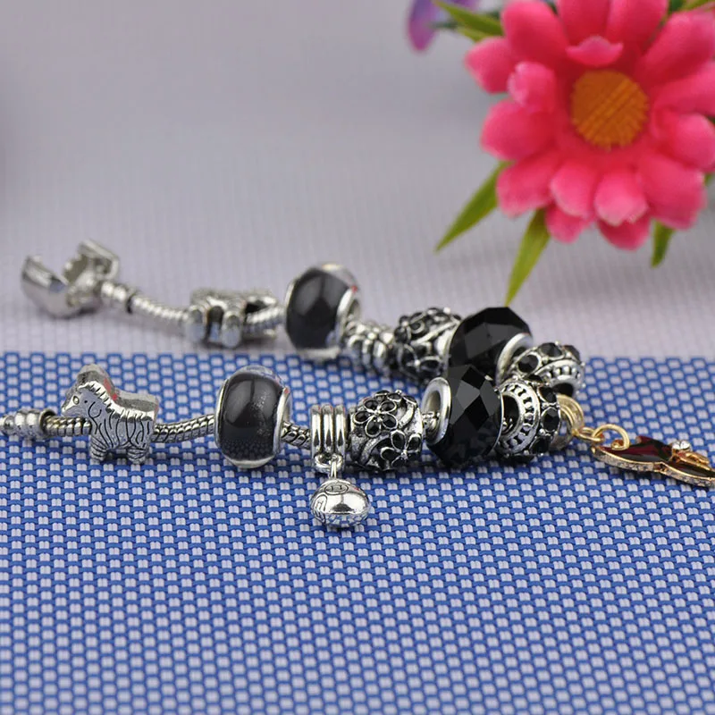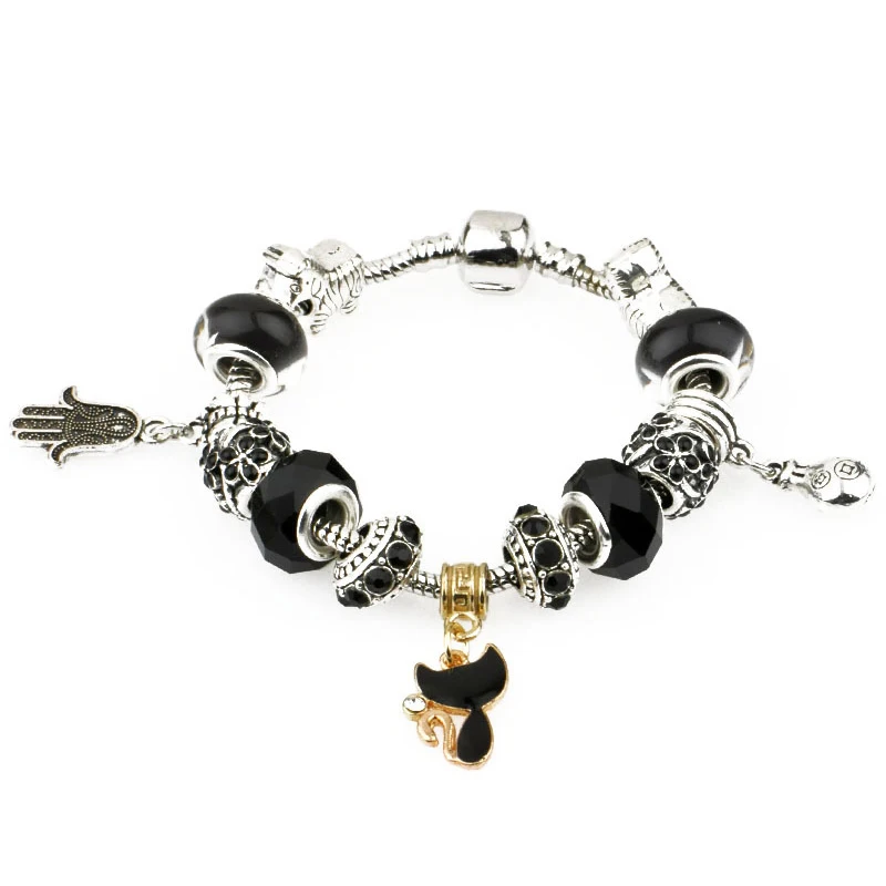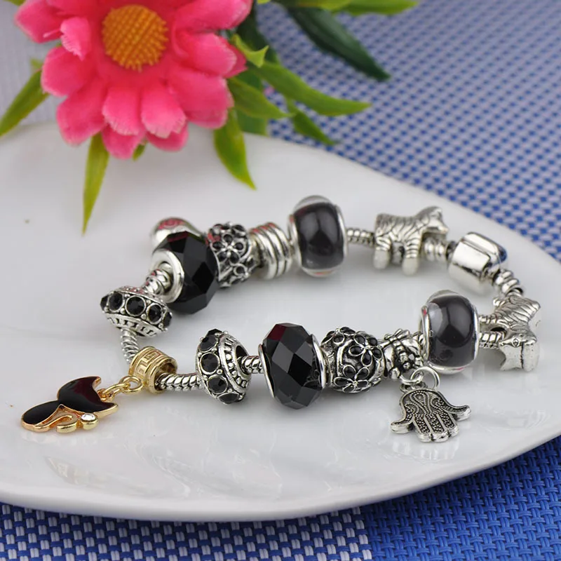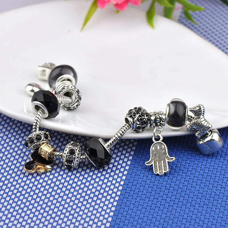 Женский комплект браслетов ручной работы черный и серый Комплект на цепочке в
