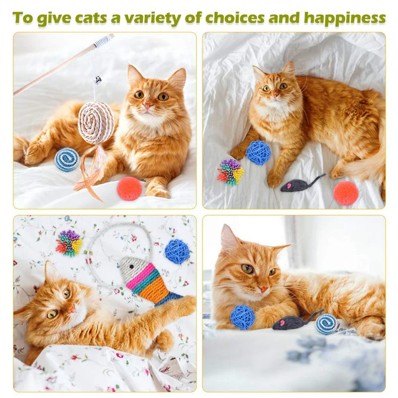 21 Pcs Cat Toys With 1 Way Tunnel Ball Mice Fish Snake Interactive Feather Teaser Cat Interactive Toys Set For Catnip Refill C