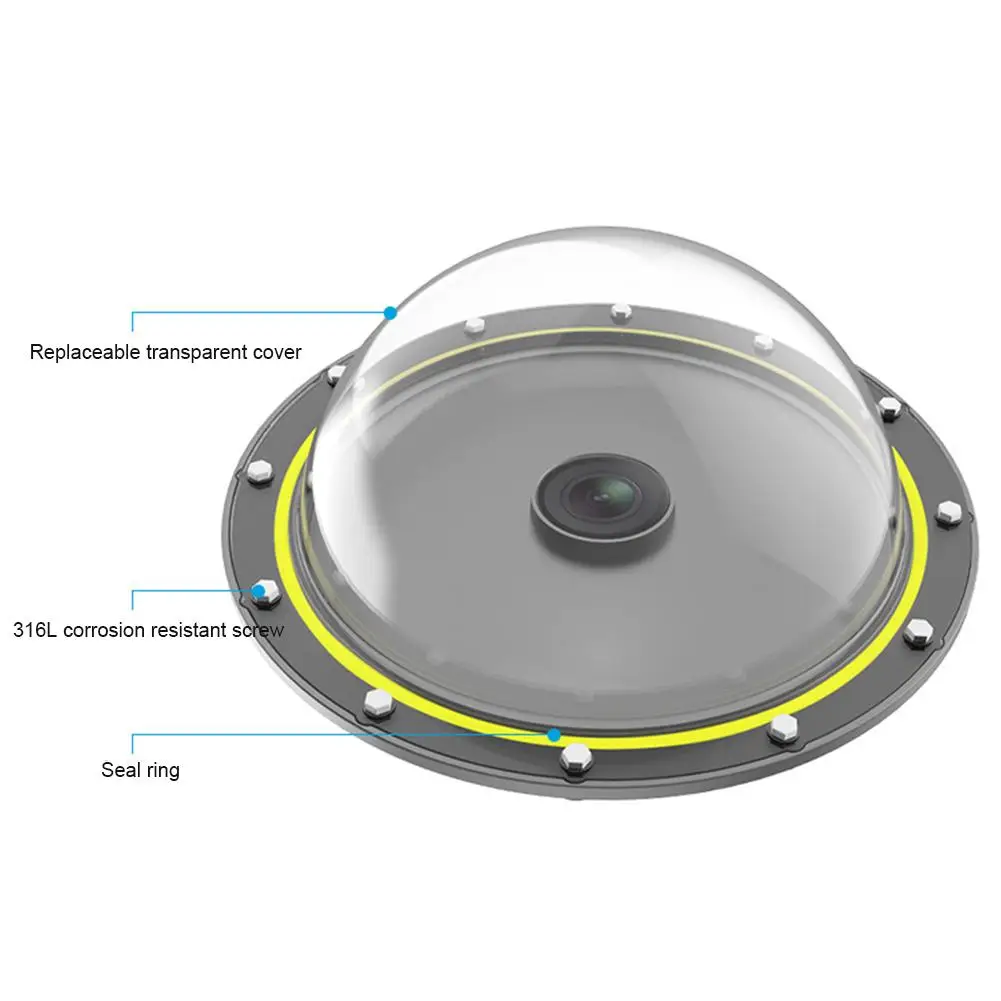 Изделие в основном состоит из черного основания, которое может хранить камеру, водонепроницаемой задней двери для герметизации, водонепроницаемой кнопки управления и оптической прозрачной крышки купола с равномерной толщиной стенок. Камеру можно свободно снимать на глубине не более 30 метров. При использовании на поверхности воды, он может играть свою самую важную и наиболее характерную функцию. Передняя оптическая прозрачная шариковая крышка может снять колебательную поверхность воды от объектива и увеличить площадь изображения объектива, так что он может легко запечатлеть фотографии половину подводного и половину на воде.Особенности:
