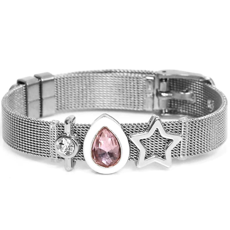 Браслет женский из титановой стали под розовое золото с подвеской от сглаза -