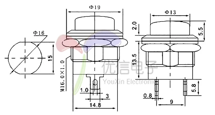 5 шт., R13-507, черный цвет, Мгновенный кнопочный переключатель, выключение, сброс, переключатель 16 мм, 3A, 250 В, переменный ток, без блокировки, переключатель, круглая кнопка Действий Тип: Мгновенный Цвет: красный, черный, синий, белый, зеленый, желтый Диаметр отверстия: 16 мм Общая длина: 25 мм Терминал: 2 pin-код Шаг штифта: 9 мм Номинальный ток/напряжение: 6A/125VAC 3A/250VAC