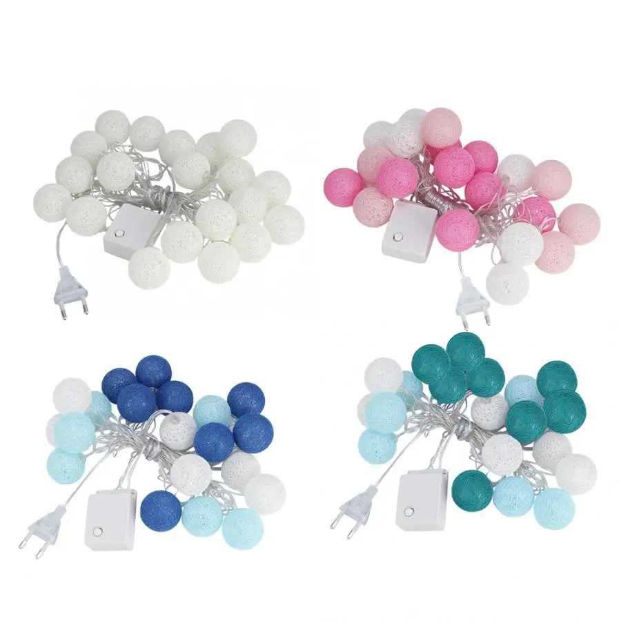 Штепсельная Вилка европейского стандарта 220V 3,7 m 20 хлопком провода шарики светодиодный светильник Строка Рождество домашняя Ночная лампа полосы