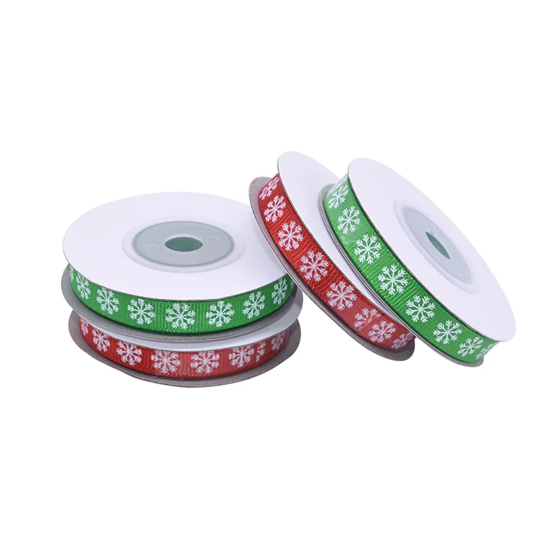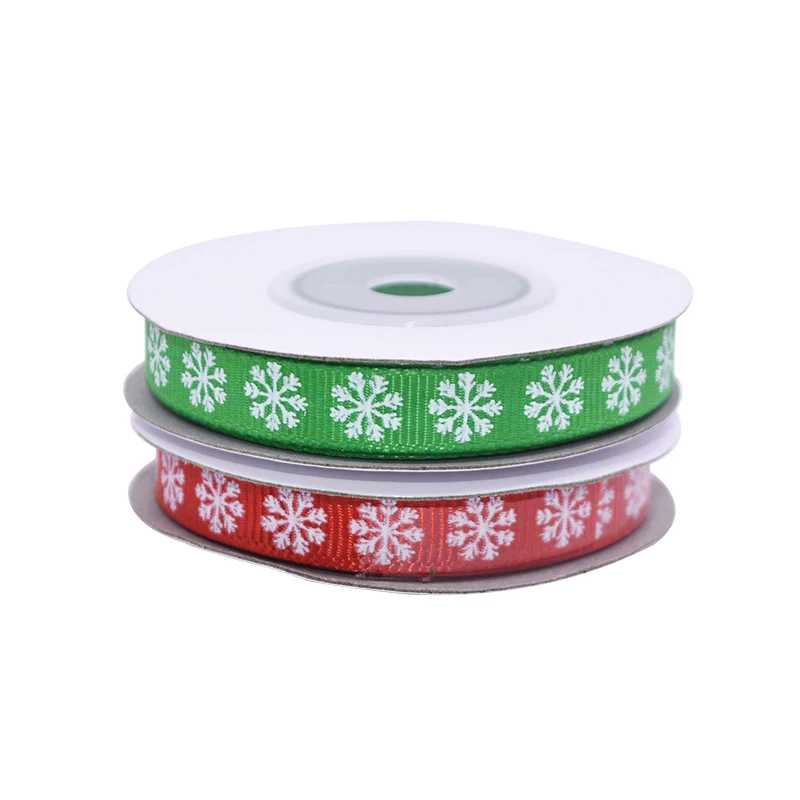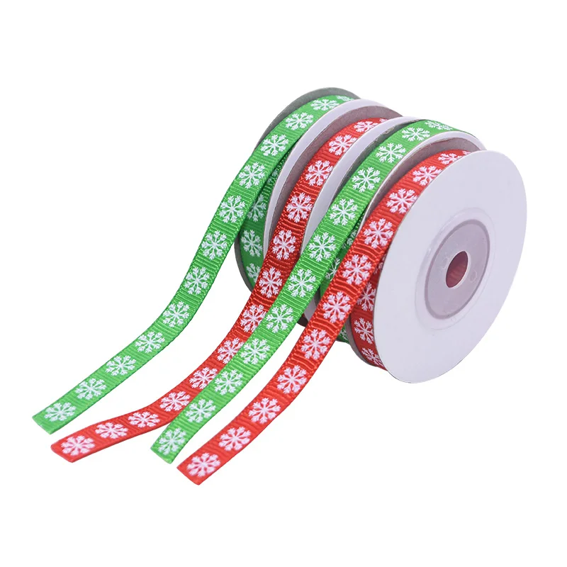 10 ярдов/рулон 3/8 ''10 мм красный зеленый Снежинка печатная атласная лента Гро-Гро ленты для свадьбы Рождественская вечеринка для упаковки подарков