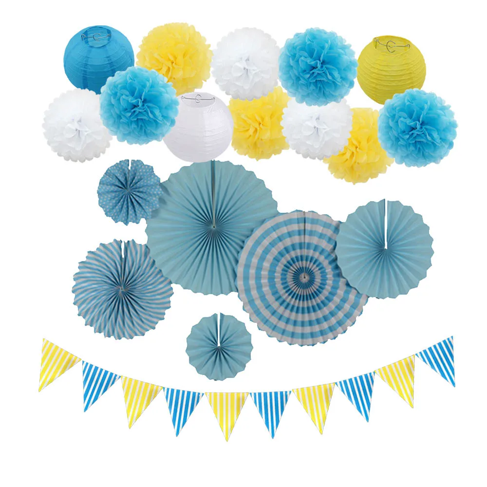 1 Набор = 3 шт 8 "бумажные фонарики + 9 шт 10" бумажный помпон + 2 шт 8 "вентилятор + 2 шт 12" вентилятор + 2 шт 16 "вентилятор + 1 набор треугольных баннеров.