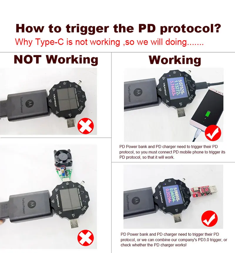 Если вы столкнулись с PD (Type-c) или (USB-C) зарядными устройствами, не работающими, пожалуйста, не волнуйтесь, пожалуйста, обратитесь к нашим следующим инструкциям, чтобы решить вашу проблему