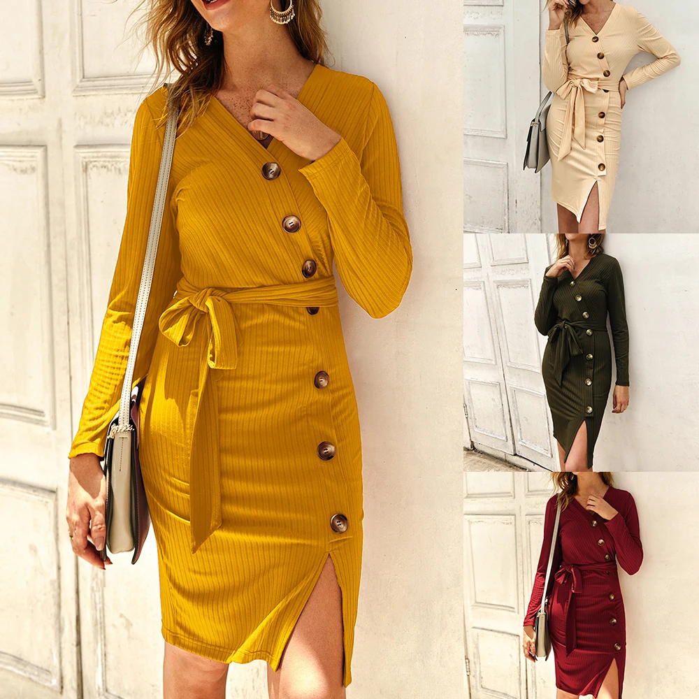 Осенне зимние платья Женская одежда с длинным рукавом 2018 новая Корейская версия