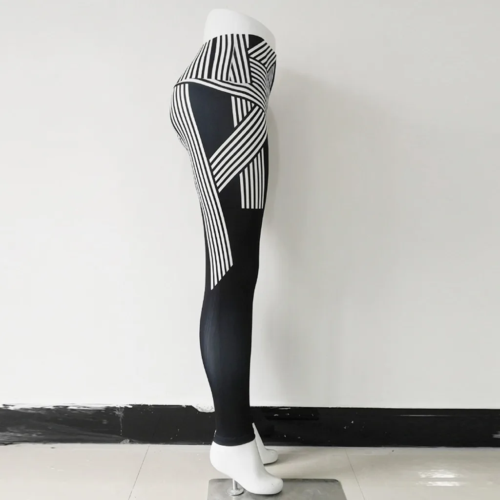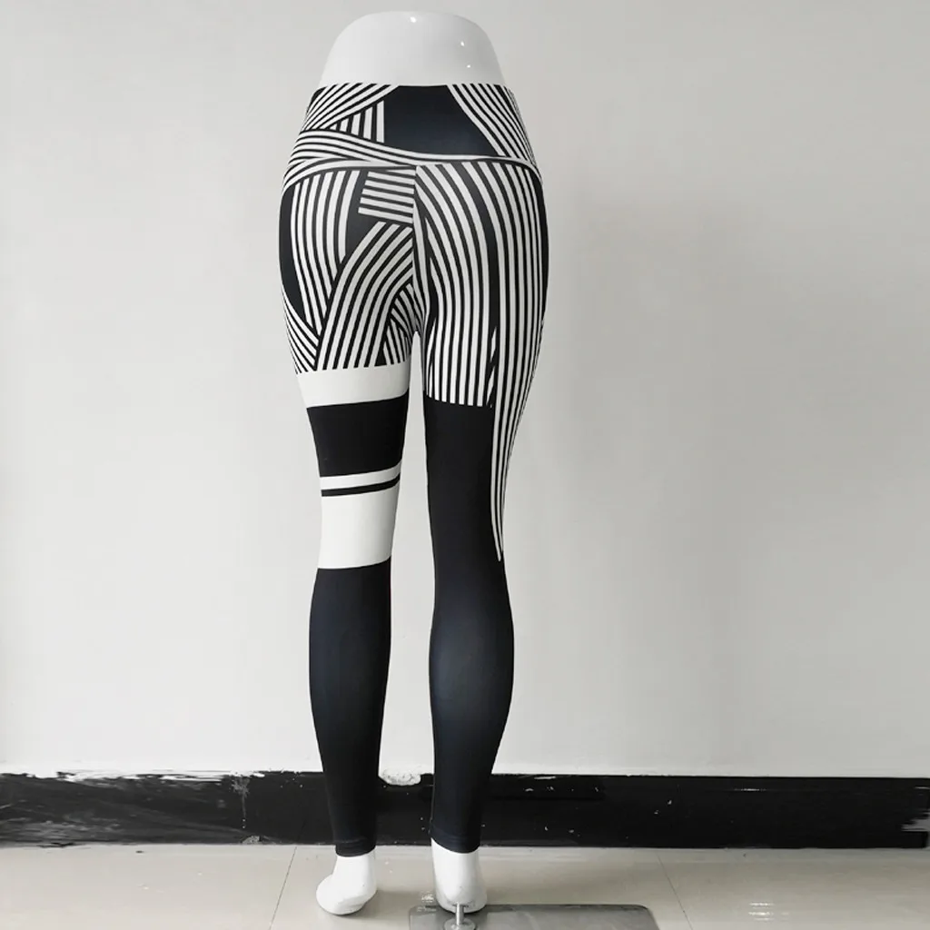 Ladies'printed Высокая талия бедра стрейч под брюки бег фитнес Йога брюки