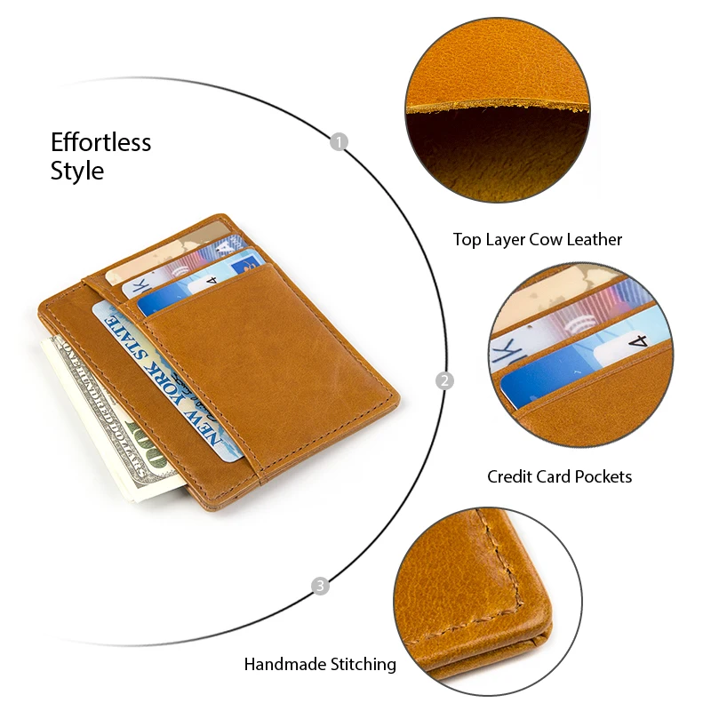 Описание продукта: 100% гарантия, натуральная-отличная воловья кожа Размер приблизительно 11 см, Д x 8,5 см, Вт (4,3 дюйма, Д x 3,3 дюйма, Вт) Цвет: оранжевый, красный, зеленый, темно-синий, черный, коричневый Вес: 0,035 кг Функция: ID держатель для карт 4 слота для карт, 1 карман для денег