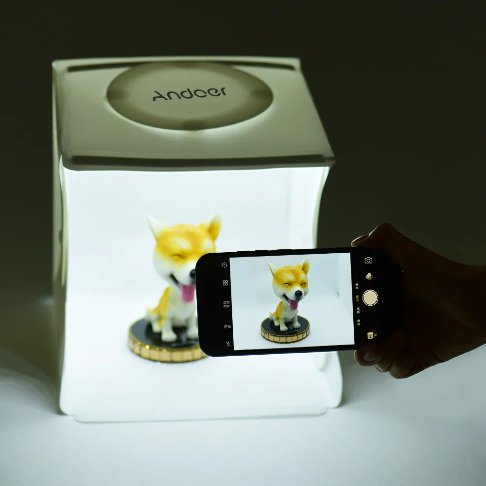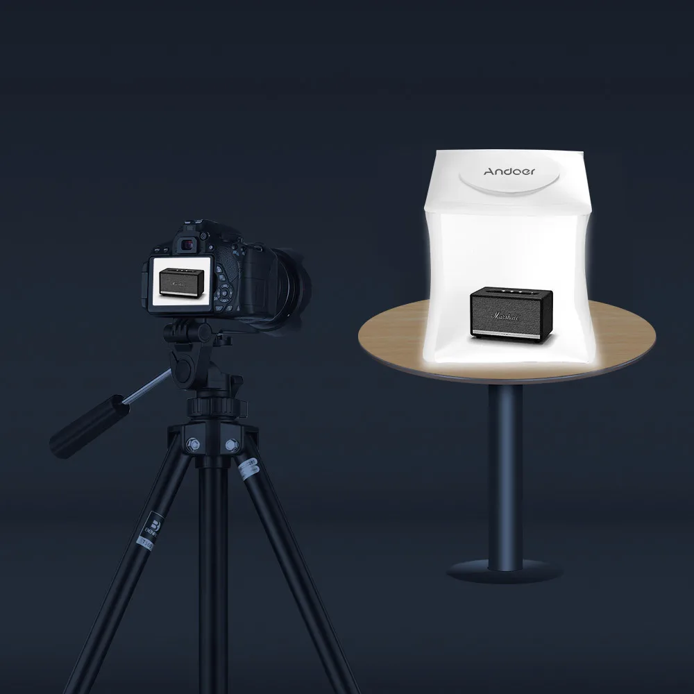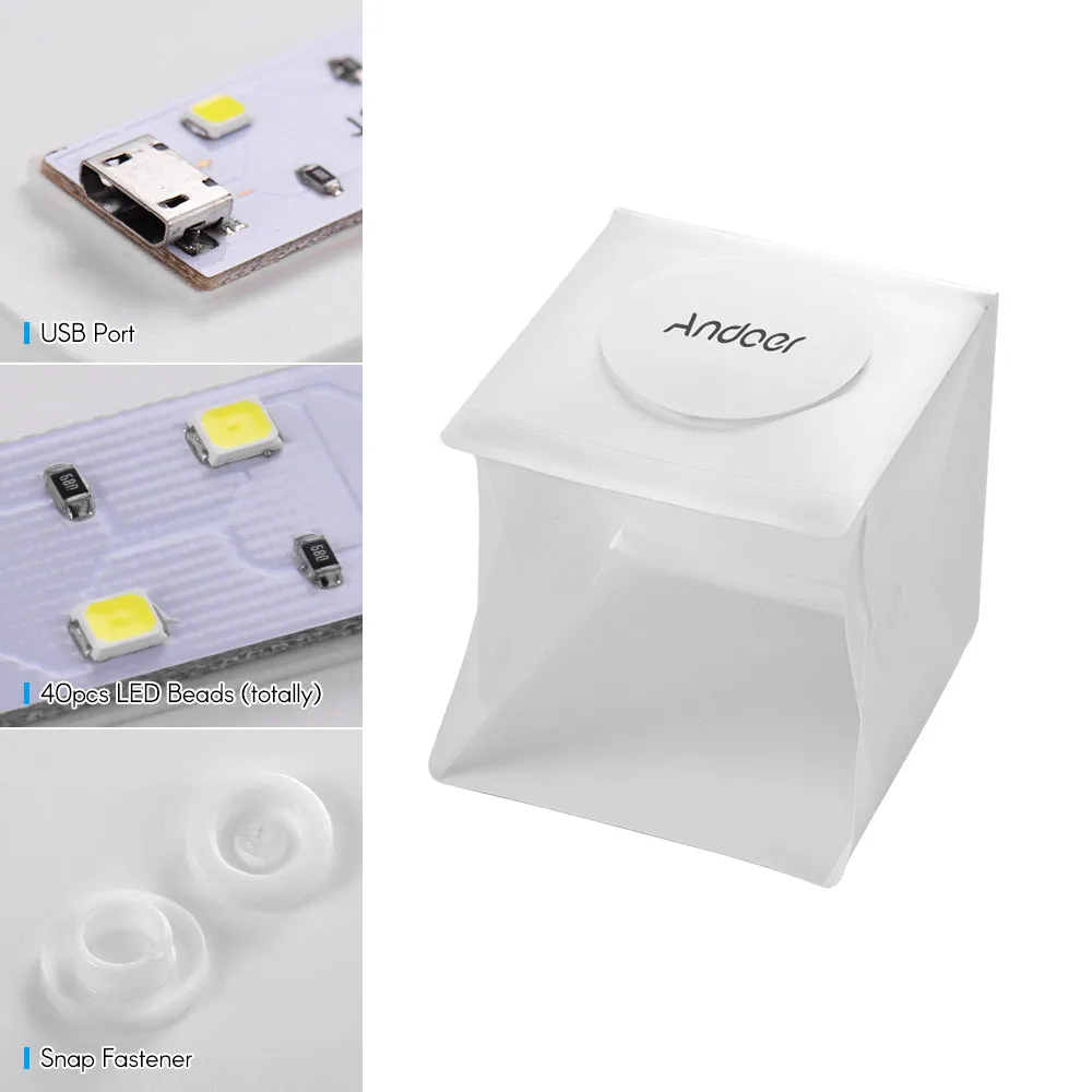 Фоны и Источник питания:6 различных цветов (черный, белый, зеленый, красный, синий, желтый) фонов включены для удовлетворения потребностей съемки на различных типах небольших продуктов; usb-порт на светодиодный ленте может подключаться к ноутбуку, адаптеру переменного тока или блоку питания для питания с помощью прилагаемого usb-кабеля.