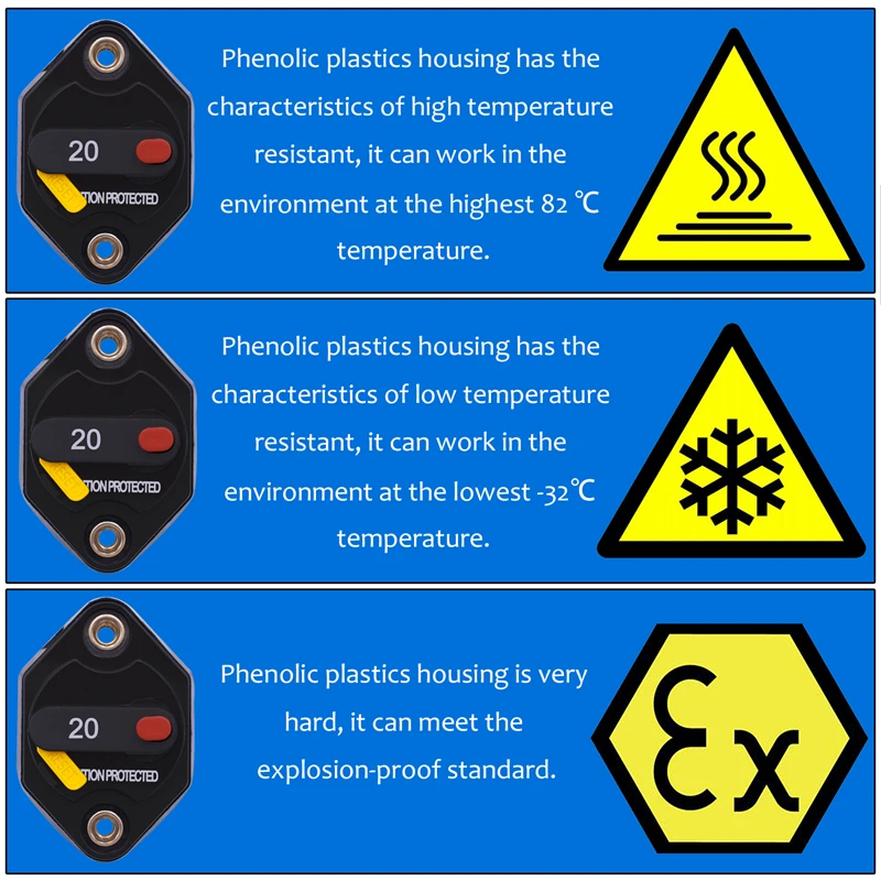 Совмещает переключение и защиту цепи в одно устройство; Ручной сброс (Переключаемый)
