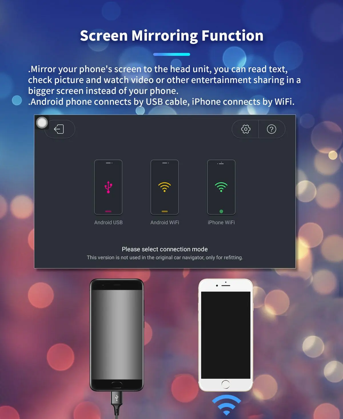 Более забавно-содержимое вашего телефона может быть зеркалировано на экране этого устройства, чтобы предоставить вам HD-дисплей. Примечание: 1) Поддержка телефона Android с помощью USB-кабеля. 2) Поддержка iPhone через Wi-Fi. 3) Что такое Mirror Link? Пожалуйста, нажмите ниже картинку или скопируйте эту ссылку на видео YouTube, чтобы узнать больше. Зеркало Ссылка: //www.youtube.com/watch?v=z2_wenXJNek&t=177s 4) разница между зеркального соединения и Zlink(Carplay/auto): zlink может зеркальный некоторые приложения на экране устройства и позволяет управлять приложениями на экране напрямую. В то время как Mirror link может зеркальный содержимое телефона только на экране.