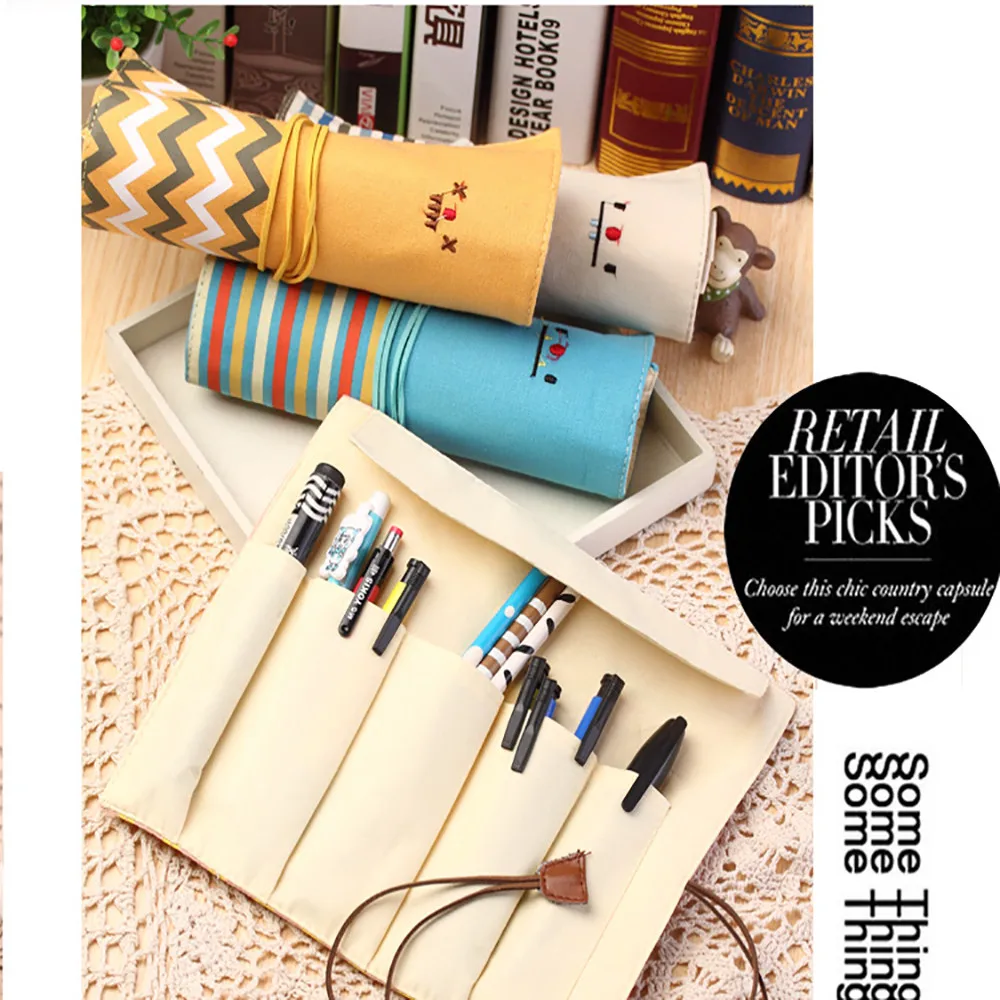 Милый мультфильм рулон холст карандаш мешок кисти обернуть мешок держатель