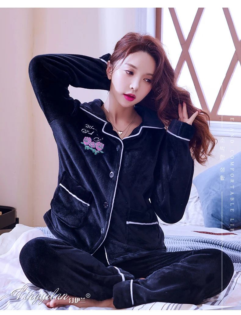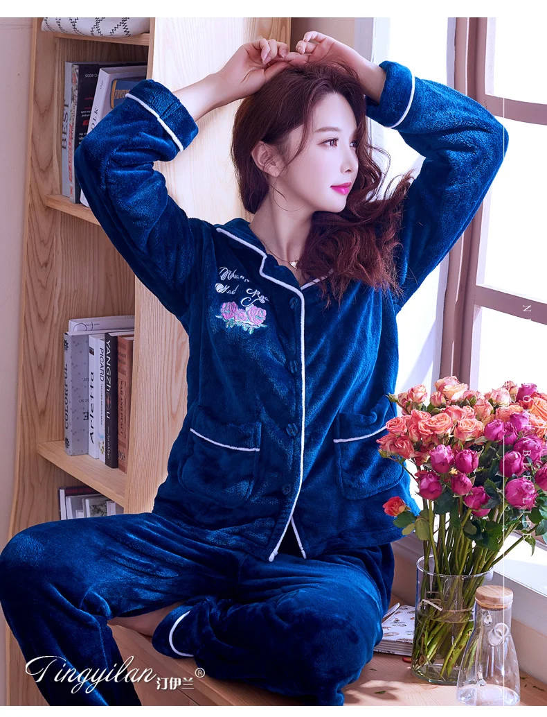 Пижама женский зимний рукав пижама женский длинный рукав женский фланель женский пижама коралл бархатный пижама женский увеличить размер набивка печать отопление