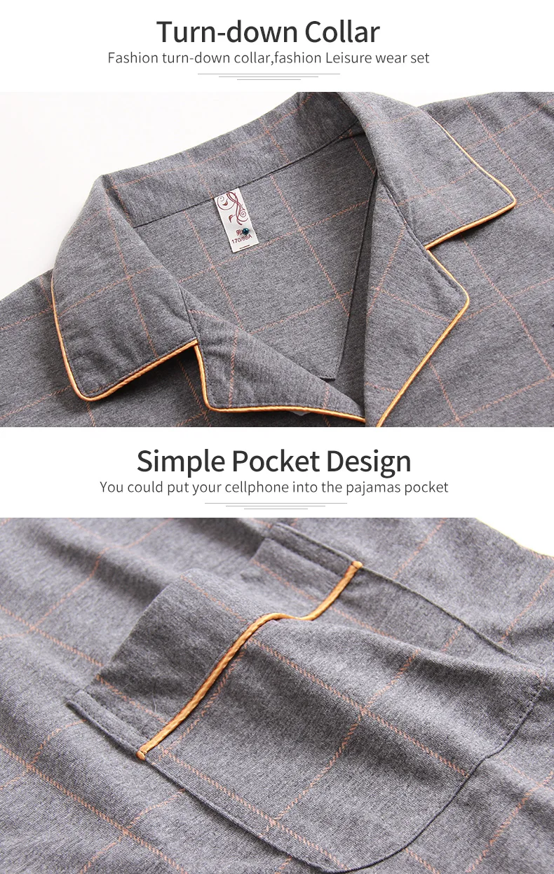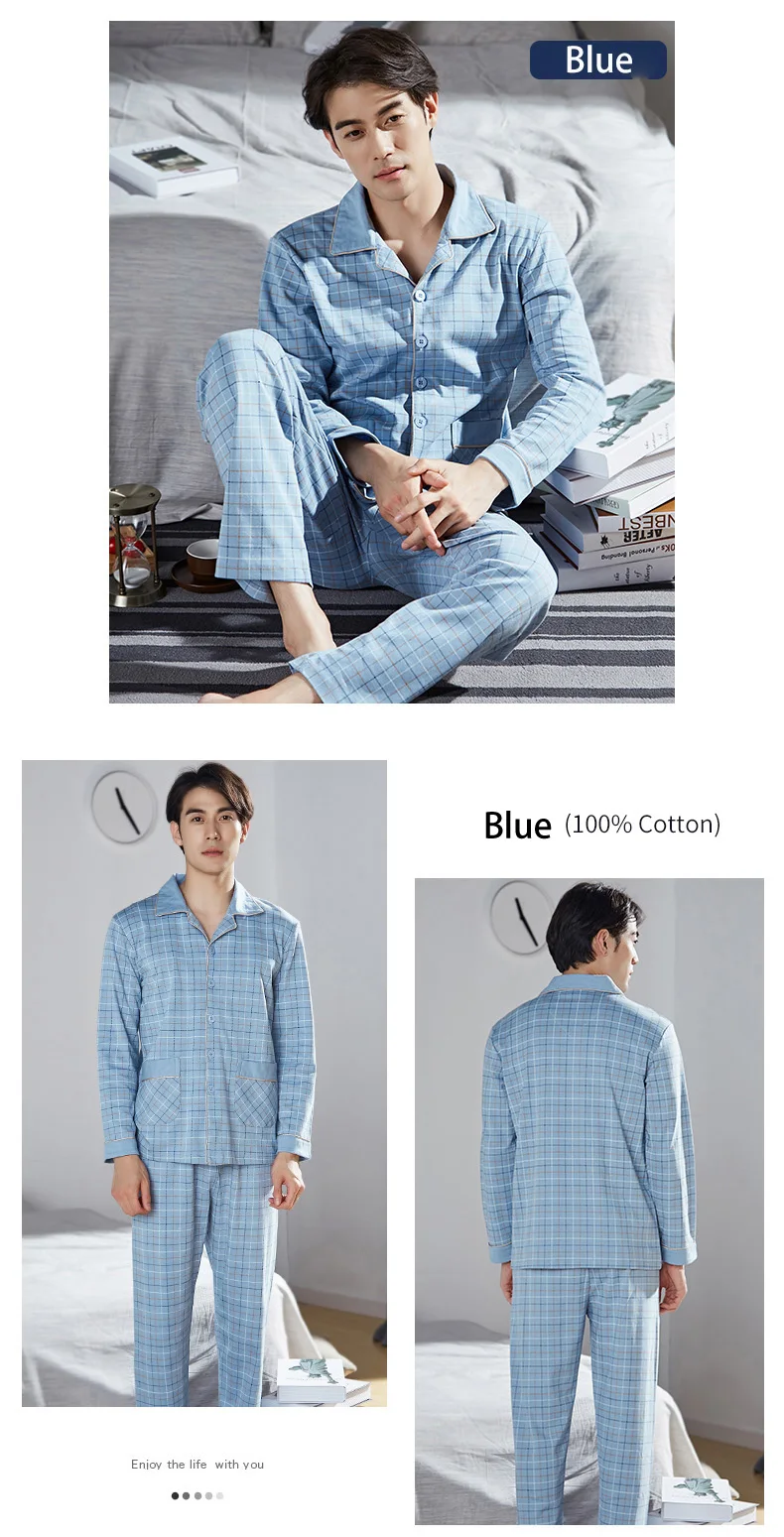 Мужская пижама с длинным рукавом и круглым вырезом однотонная Пижама зимняя
