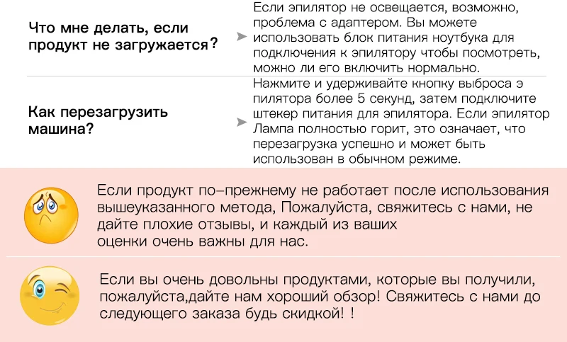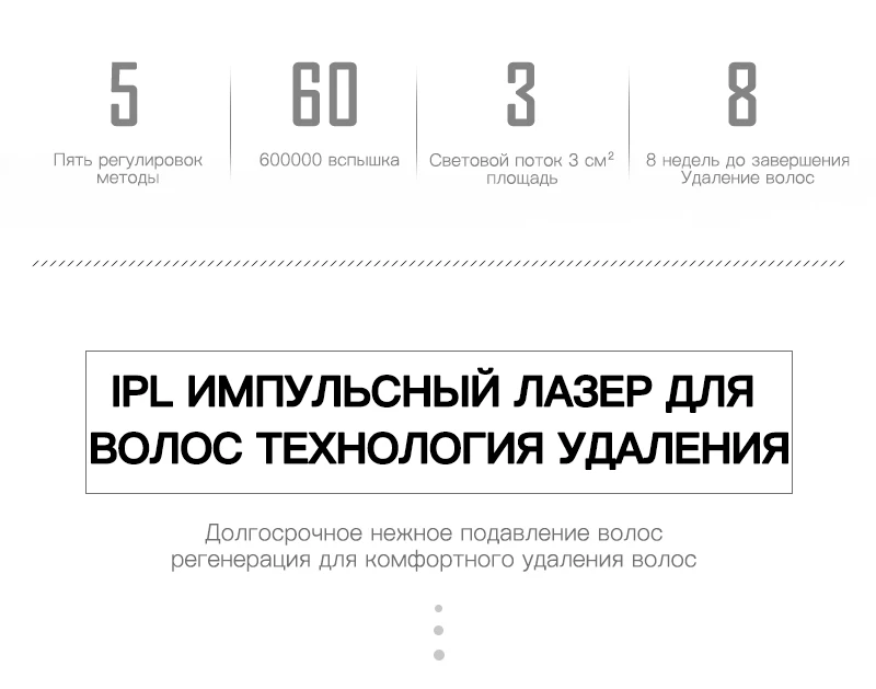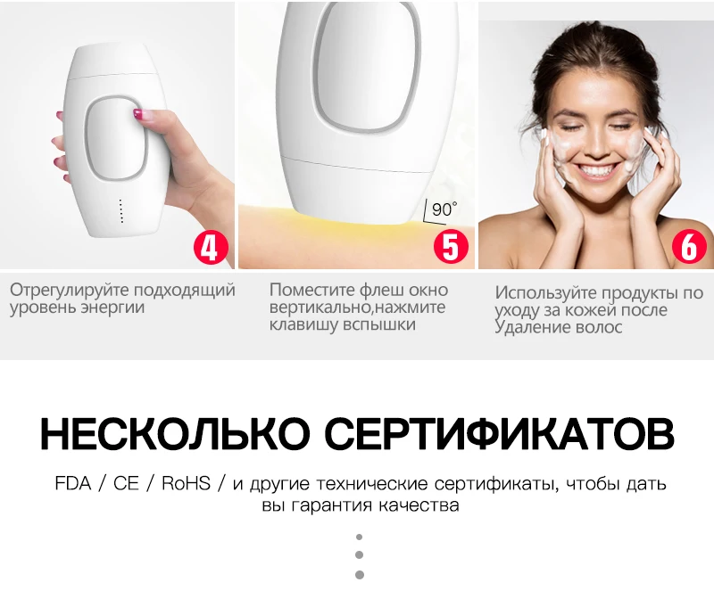 Быстрое, длительное удаление волос Во вспышке светильник Имеет компактный проводной дизайн для быстрого и простого использования в домашних условиях. Для достижения наилучших результатов используйте его каждые две недели в течение первых двух месяцев, а затем делайте ежемесячные касания. Шаг 1 Удалите излишки волос путем бритья, эпиляции или восковой эпиляции области перед первым лечением. Шаг 2 Выберите правильный уровень интенсивности. Шаг 3 Включите устройство и прижмите его к коже. Дождитесь включения готового к вспышке светильник и нажмите кнопку вспышки.