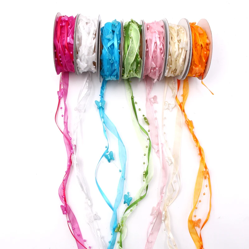 Новые 2 метра/рулон гирлянда из бабочек органза ленты для рукоделия Свадебные DIY вечерние украшения Модные Пружинные ленты