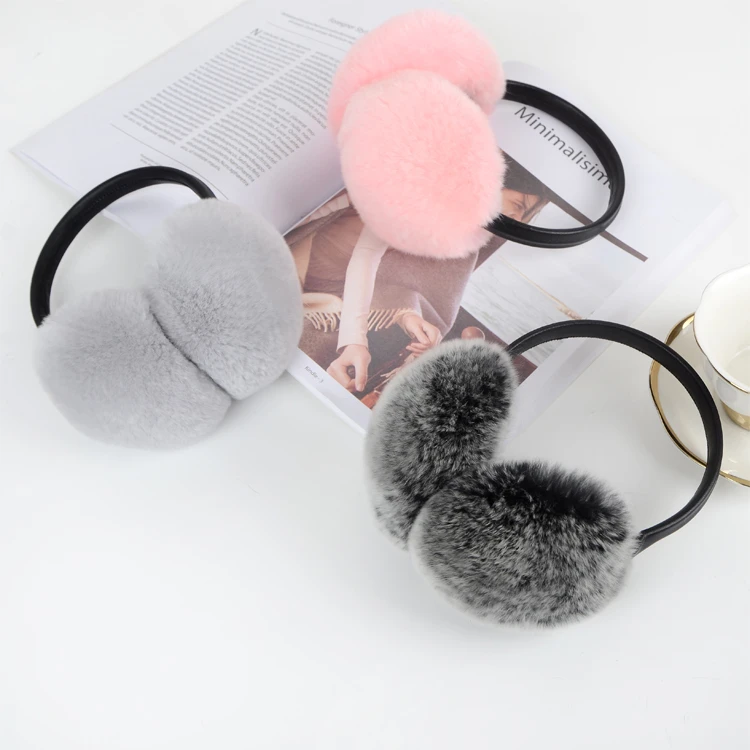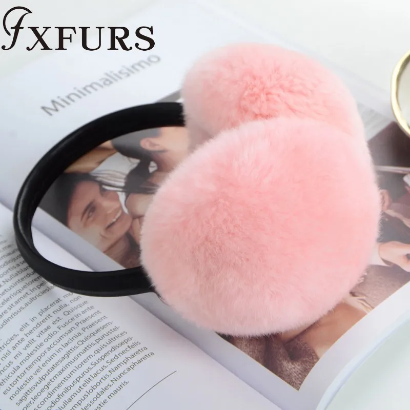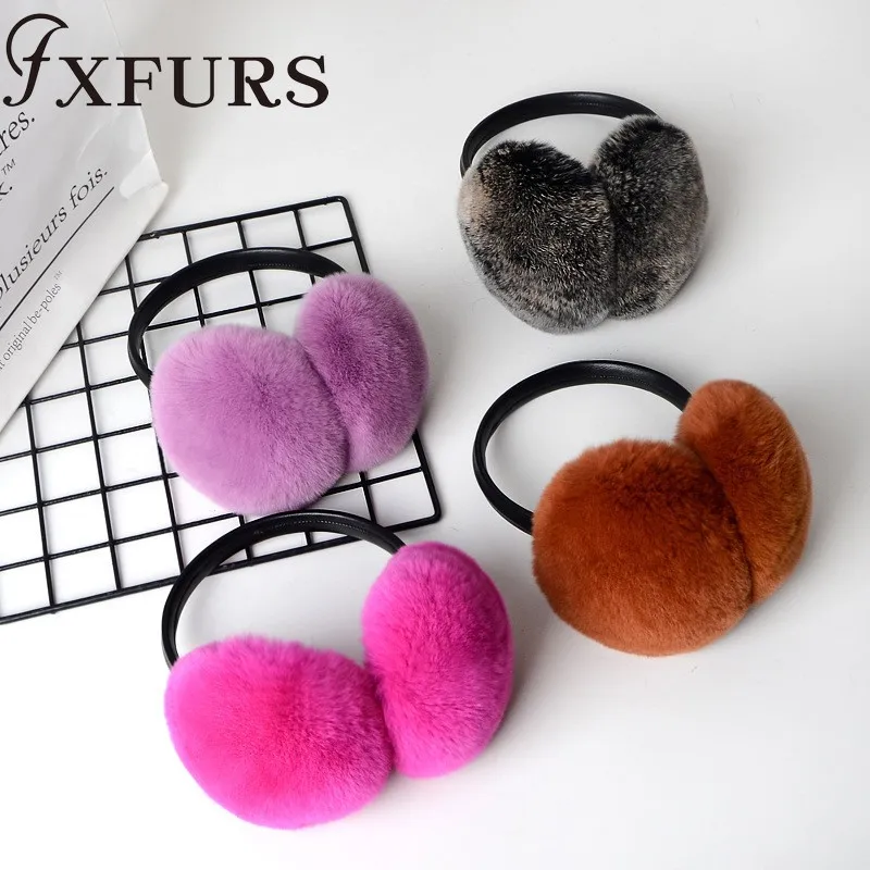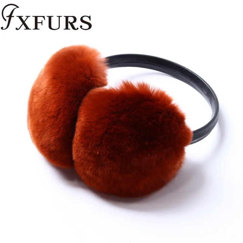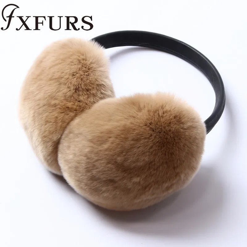FXFURS 2020 женские модные наушники из меха кролика рекс с кожаной полкой