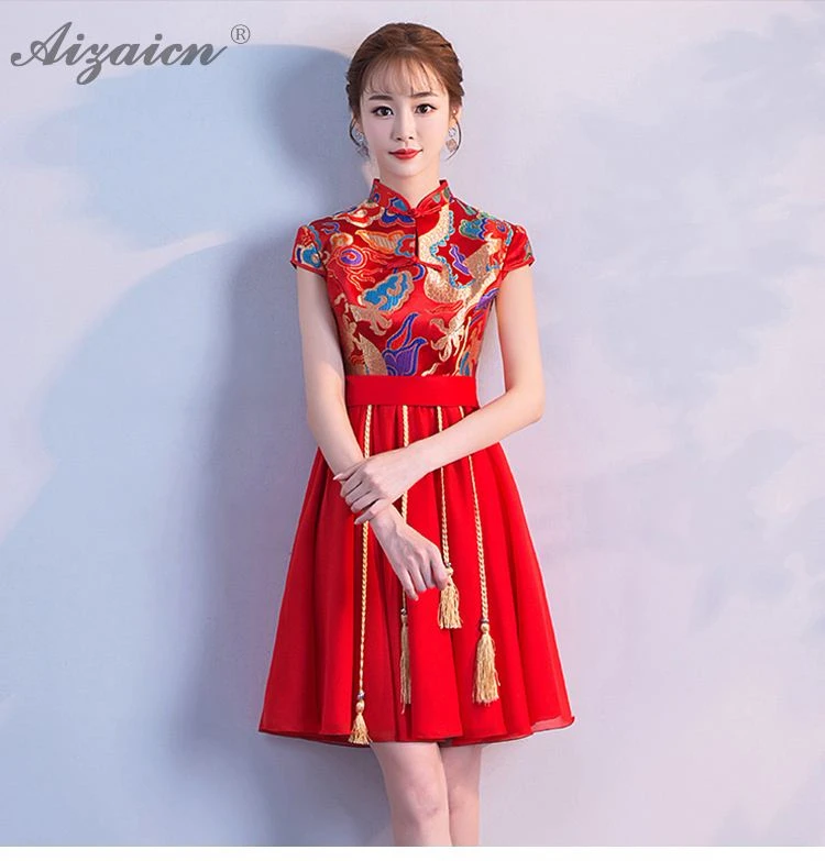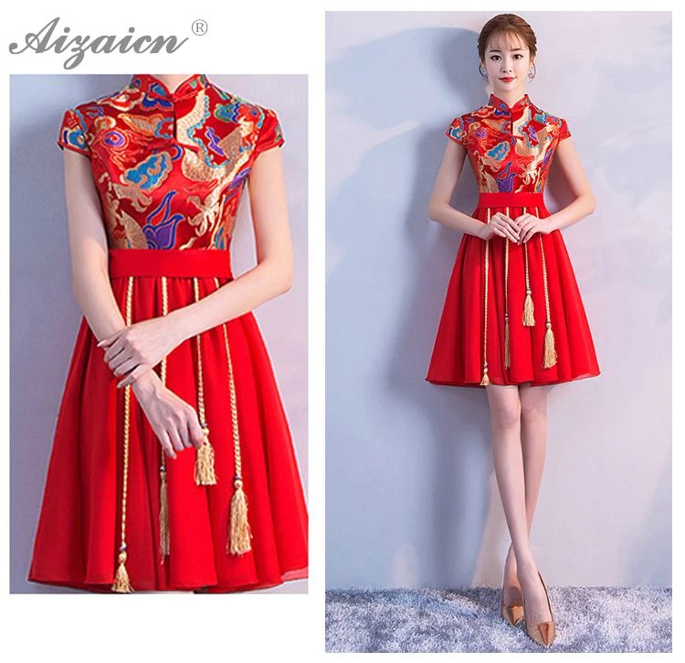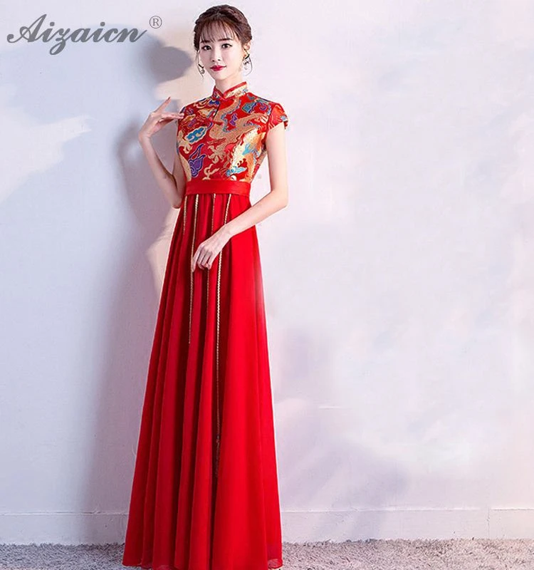 Винтажное свадебное платье в китайском стиле одежда для тостов ретро длинное