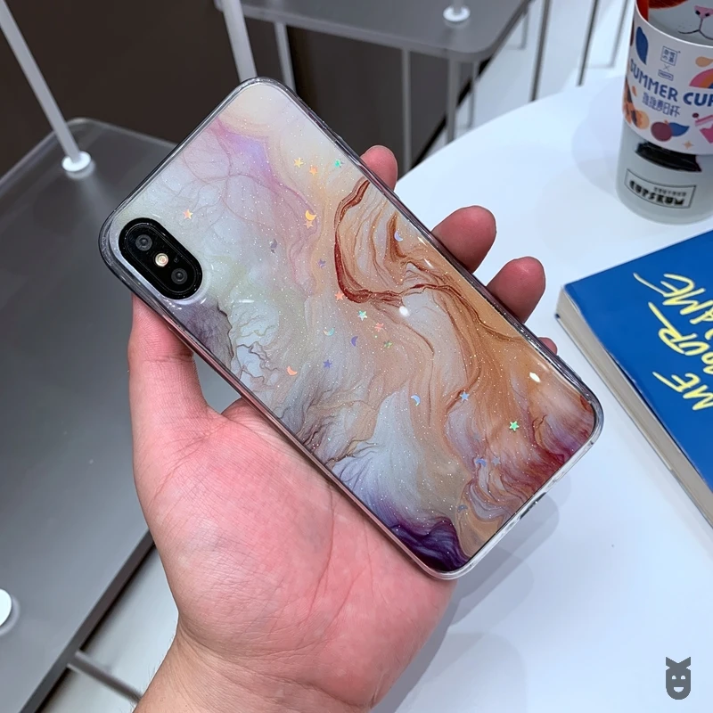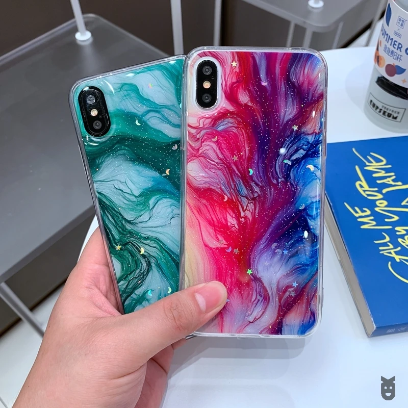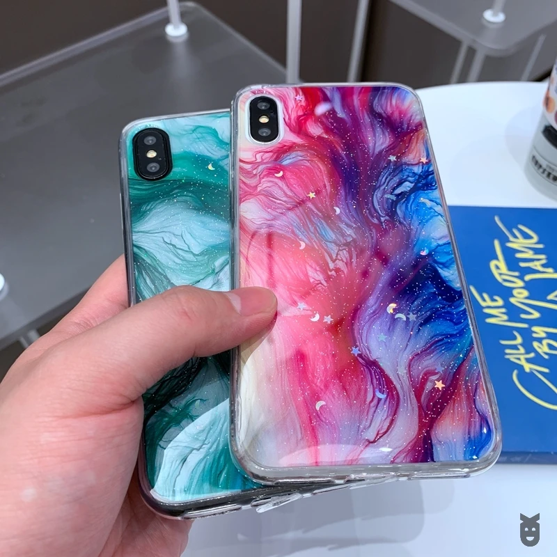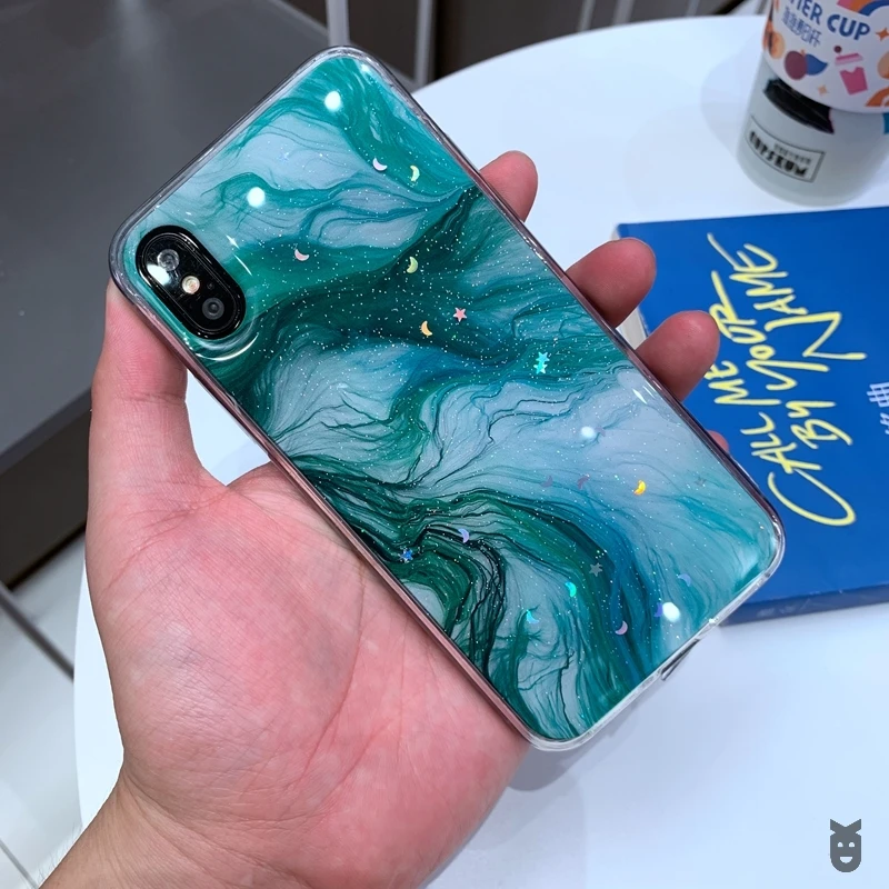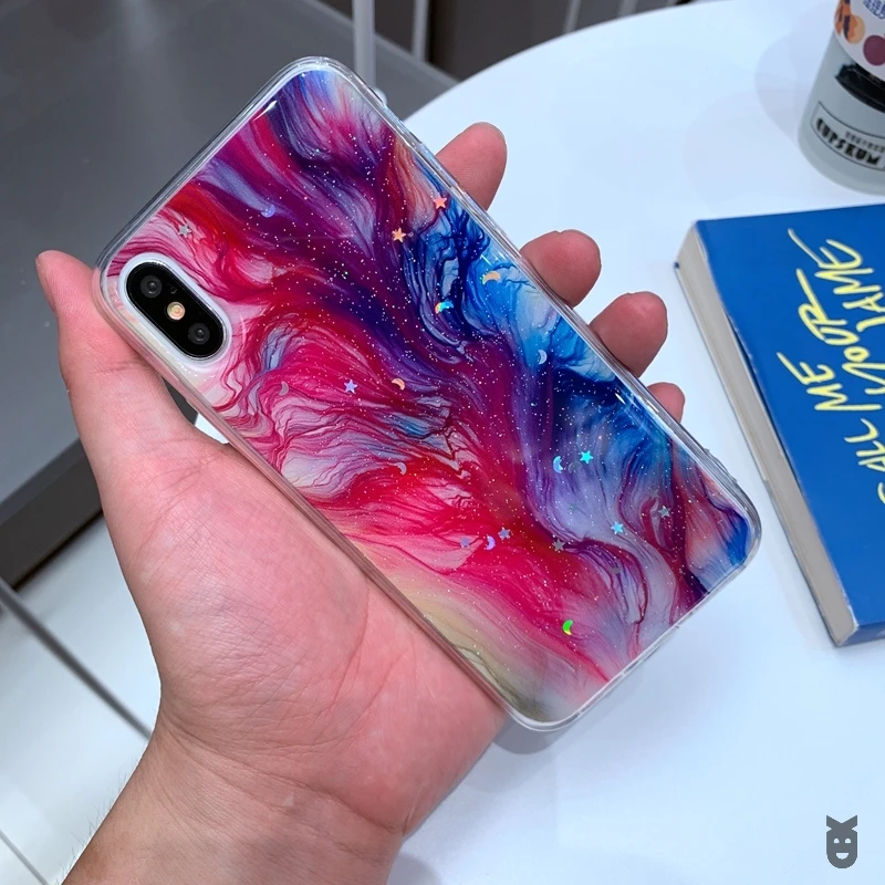 Мягкий прозрачный силиконовый чехол из ТПУ для iPhone 6 6s 7 8 Plus 10 X XS XR 11 Pro Max, блестящий чехол с Луной, звездой, мрамором, блестящими блестками