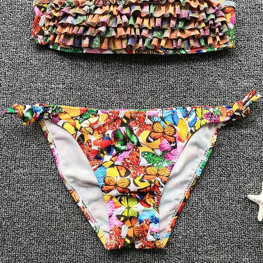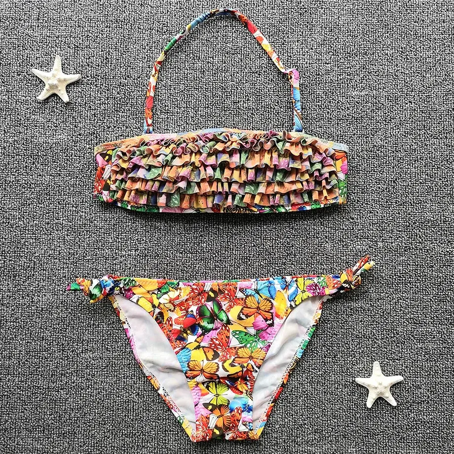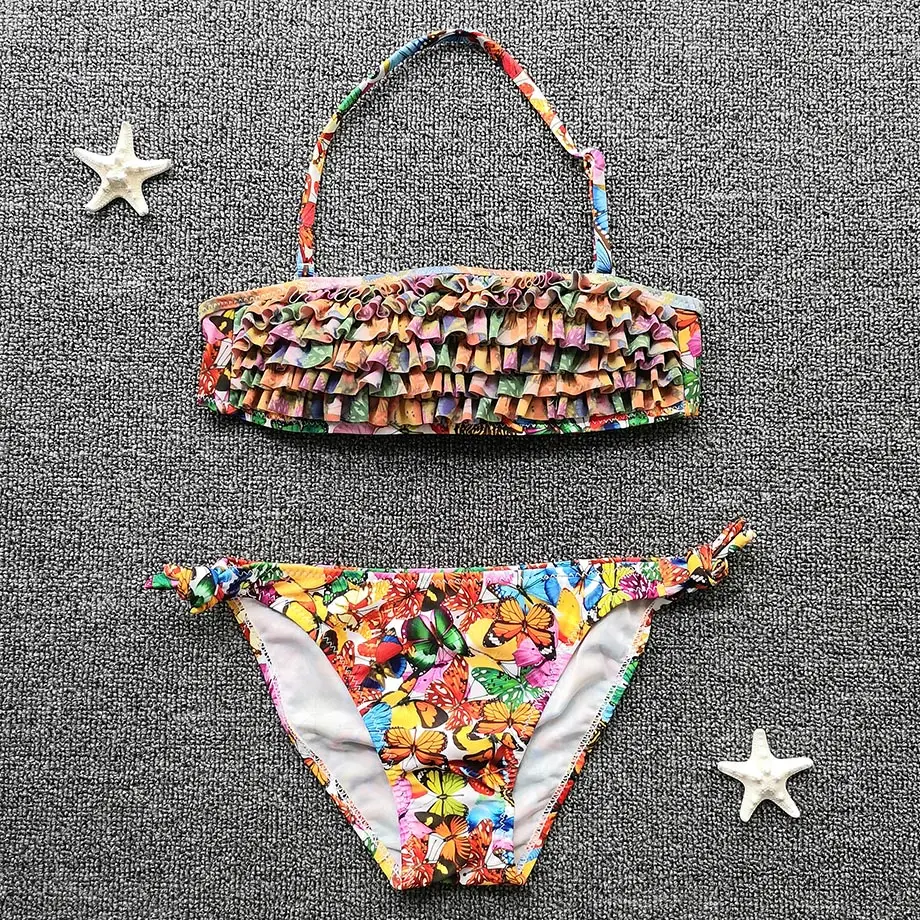 От 5 до 12 лет купальный костюм для девочек; Детский комплект из двух предметов; Купальный костюм с принтом в виде бабочек; Комплект бикини для крупных девочек; Купальный костюм с оборками для девочек; Одежда для плавания