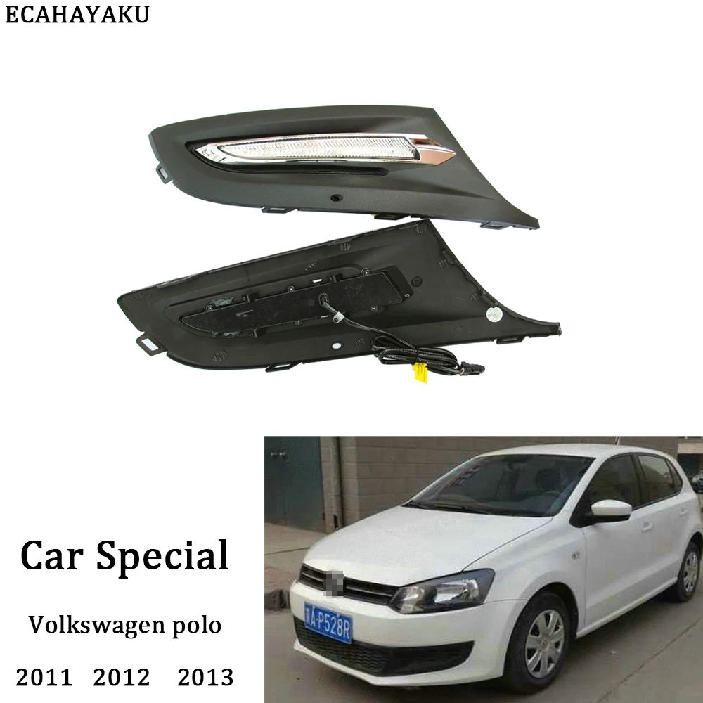 ECAHAYAKU 1 пара 12В Противотуманные фары дневные фары Дневные ходовые огни светильник СВЕТОДИОДНЫЙ крышка фар дальнего света для Защитные чехлы для сидений, сшитые специально для Volkswagen Polo 2011 2012 2013 Автомобильный светодиодный потолочный светильник