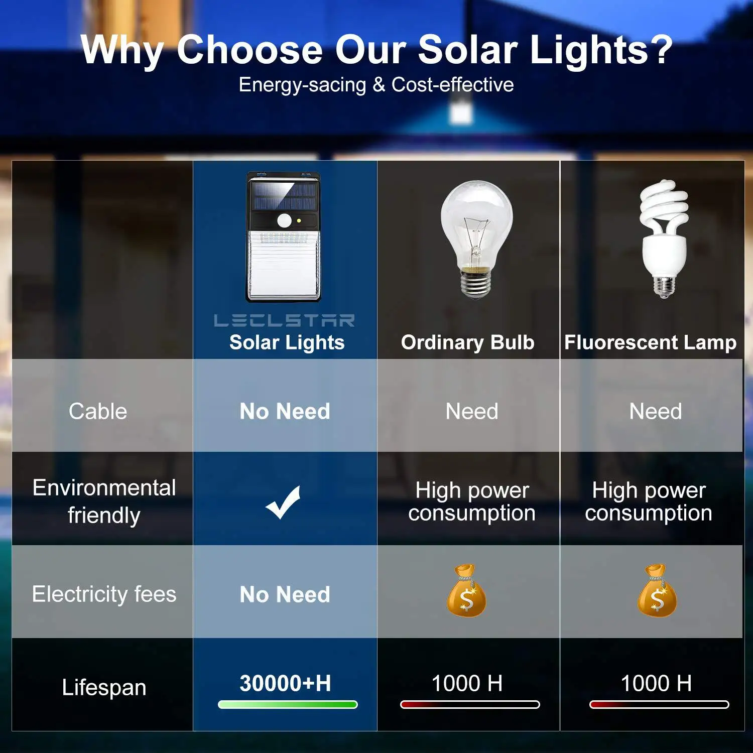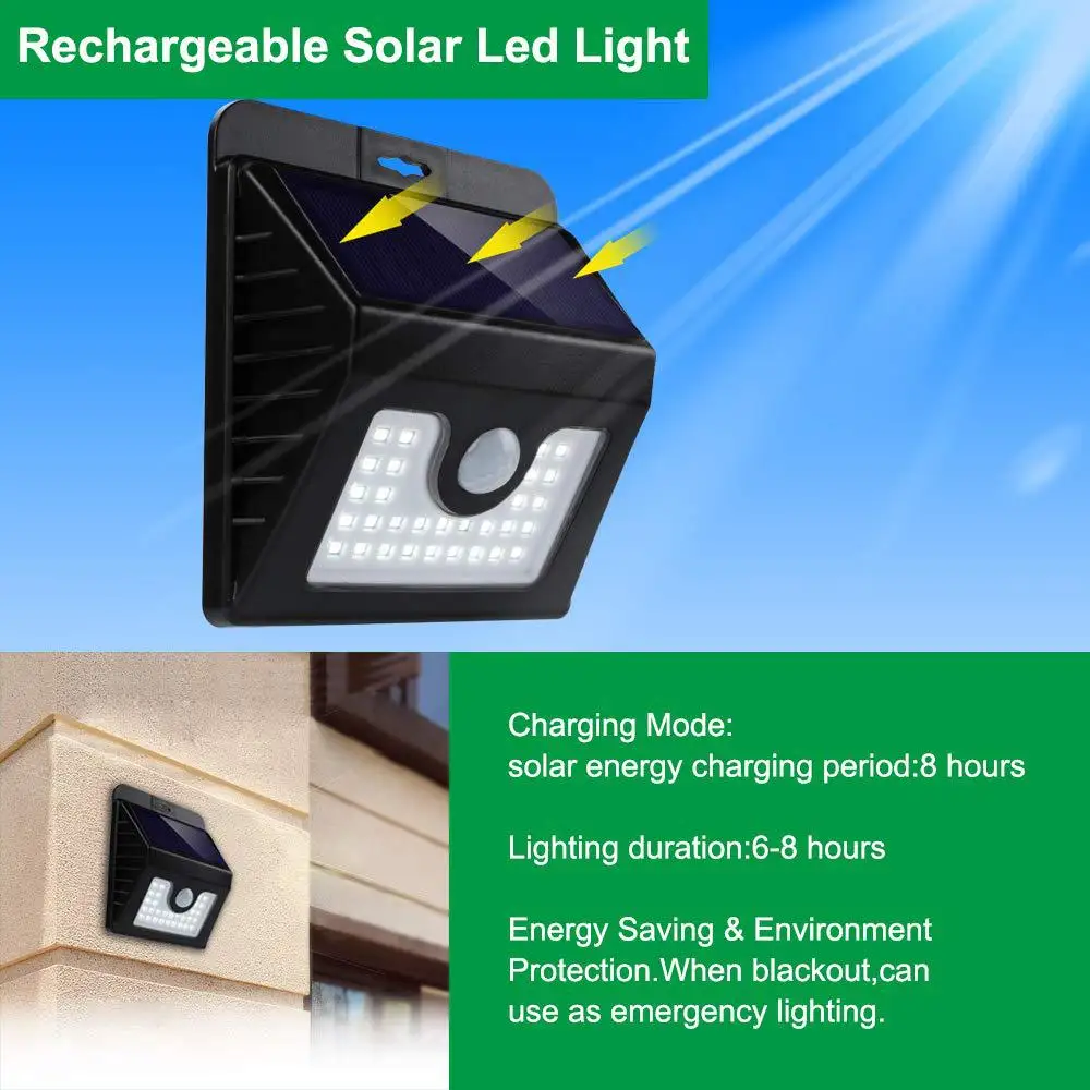 1-высококачественная поликристаллическая солнечная панель Высокий коэффициент конверсии светильник, и солнечные панели полностью проверены. 2-светодиодный энергосберегающий светильник Высокая яркость, высокая цветопередача, энергосбережение. 3-супер большая площадь освещения