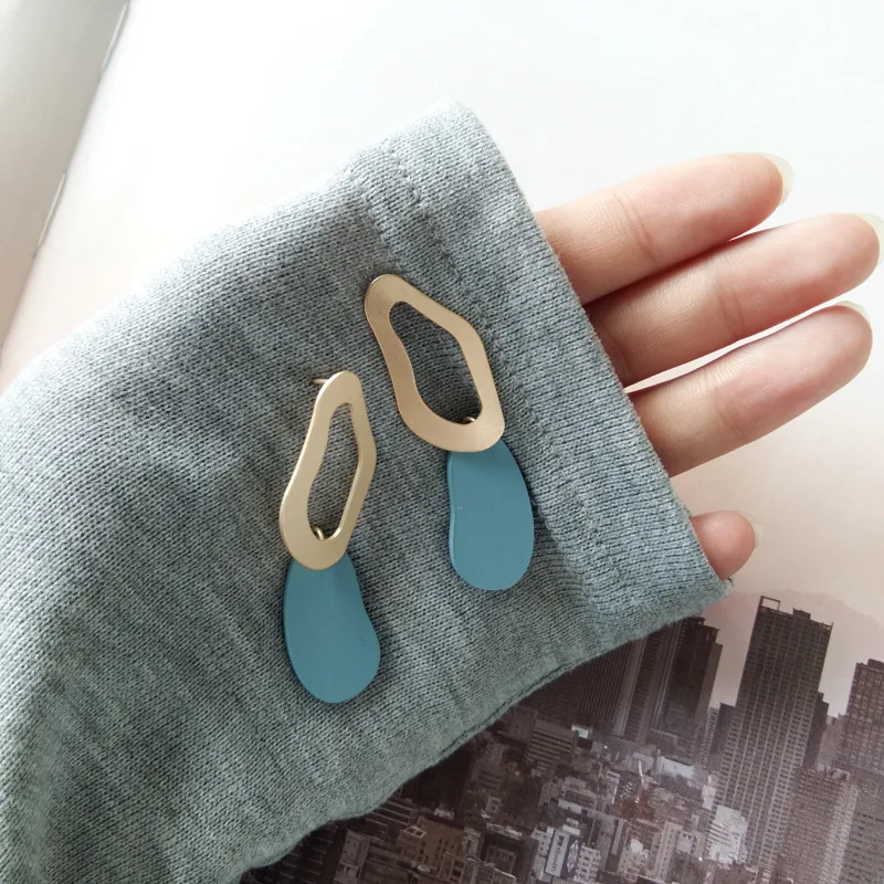 Женские серьги капельки с цветком металлические яркие и лепестками большие