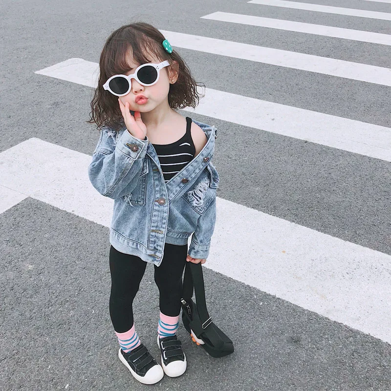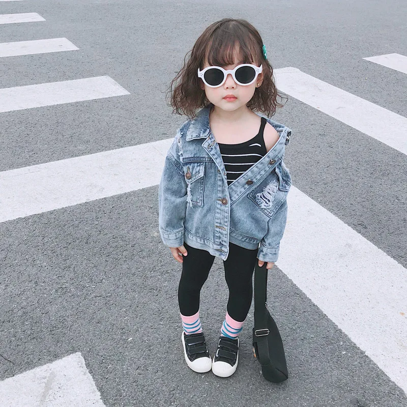 Thunderers/весенне-Осенняя детская куртка для девочек, детские джинсовые пальто с рваными дырками Джинсовая Верхняя одежда для мальчиков и девочек, костюм для детей от 24 месяцев до 7 лет