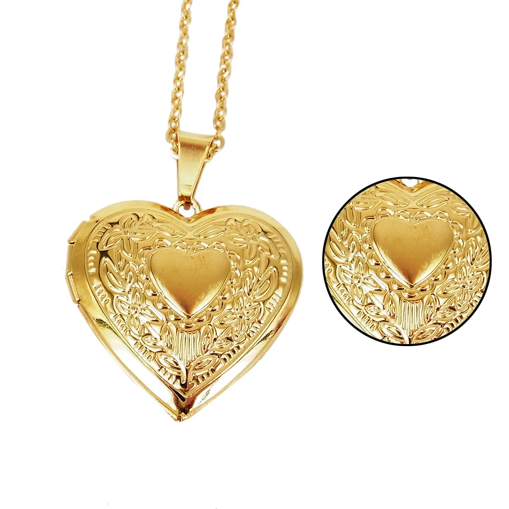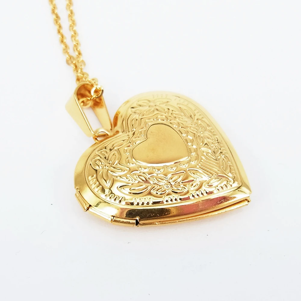 Мини-фоторамка ожерелье для женщин Очаровательная звеньевая Цепочка позолоченный полый кулон аксессуары ретро классический Сердечко-образный медальон