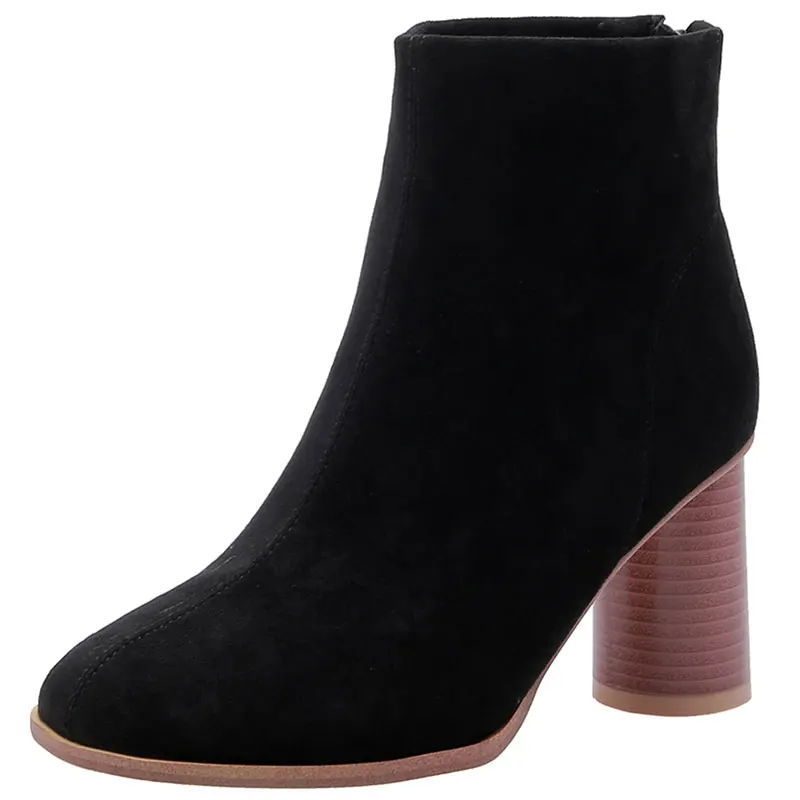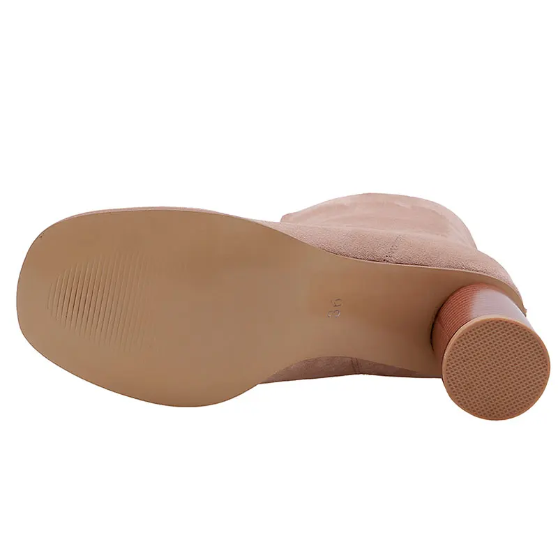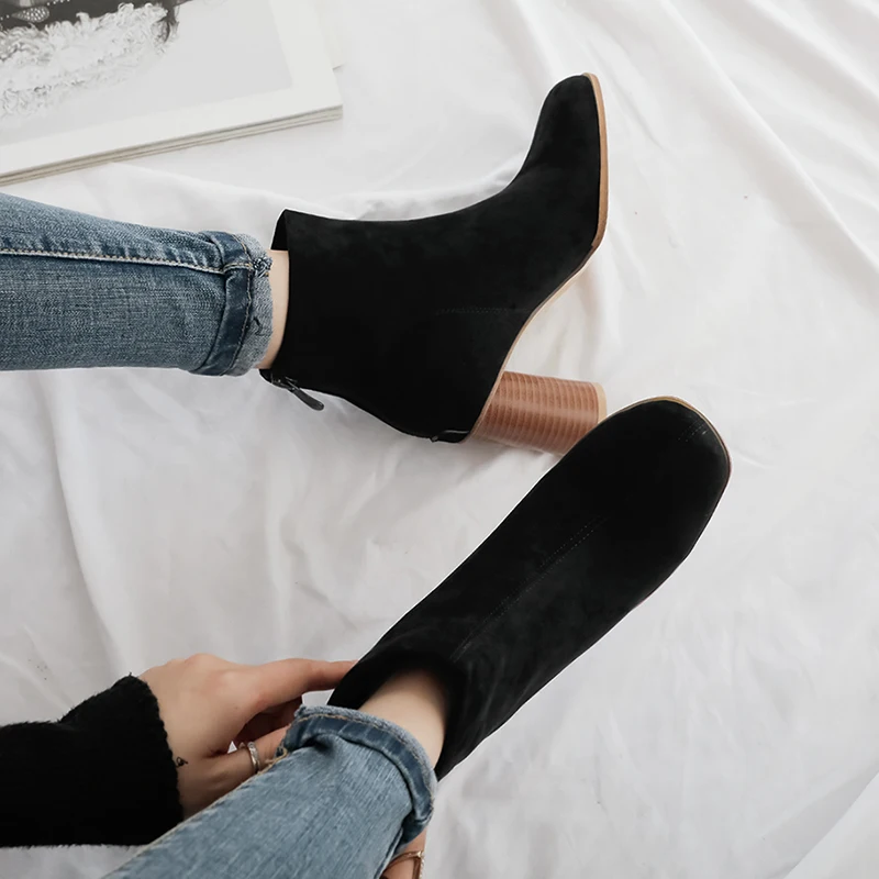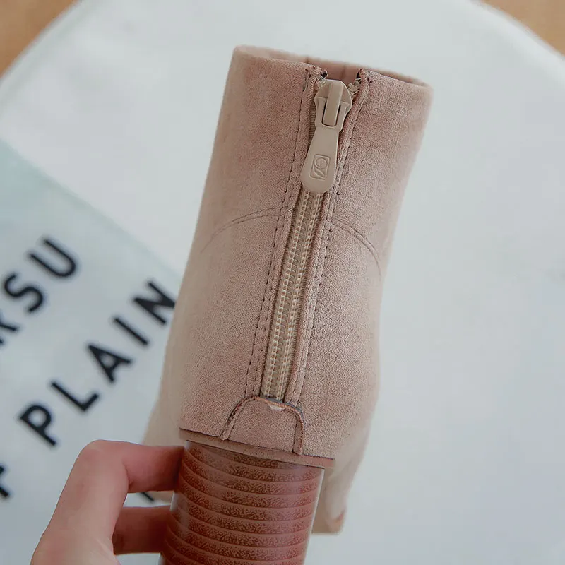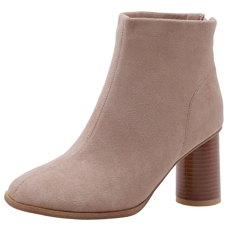 Sgesvier/зимние ботинки из флока; Женские ботильоны на высоком каблуке; Ботинки «Челси» с круглым носком; Обувь; Цвет черный, абрикосовый; Женская обувь; G708