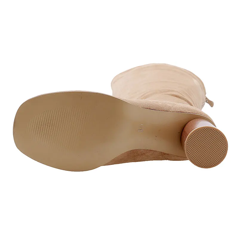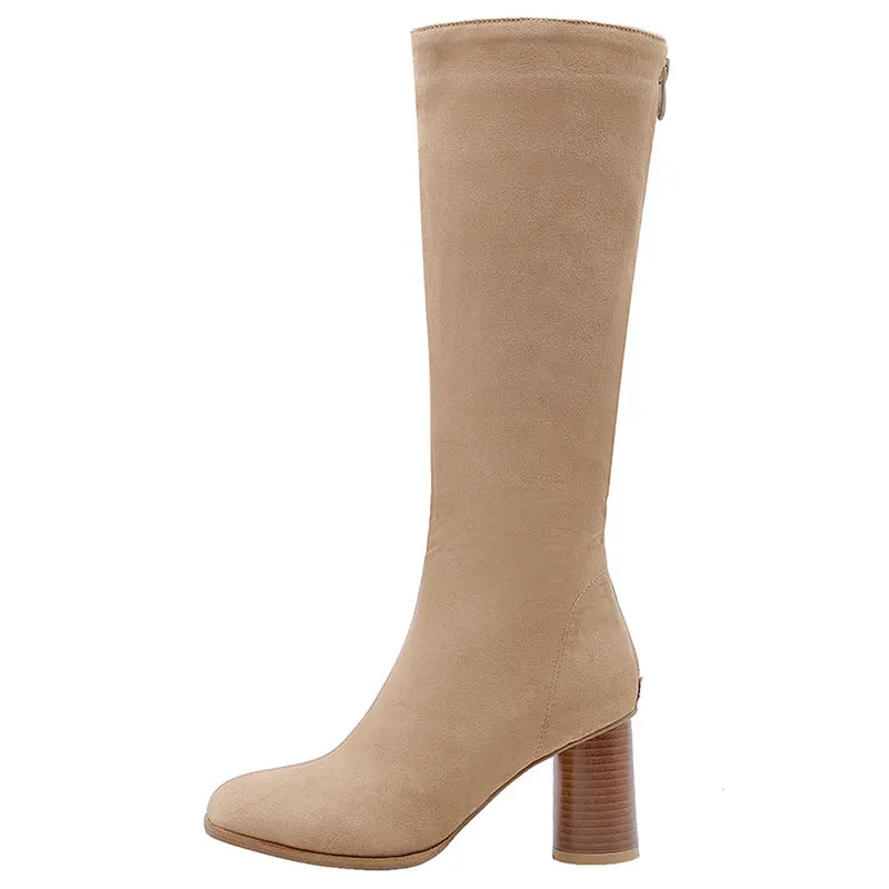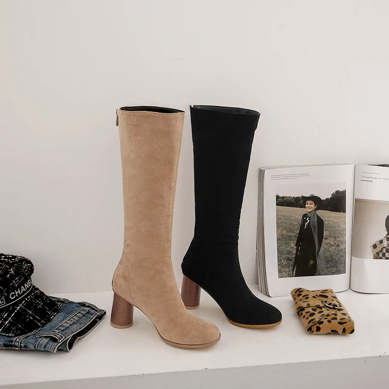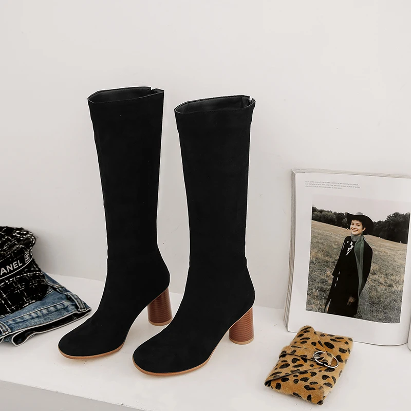 Sgesvier/женские зимние теплые сапоги; Эластичные сапоги до колена из искусственной замши; Черные сапоги с круглым носком на высоком каблуке; Женская обувь; G711