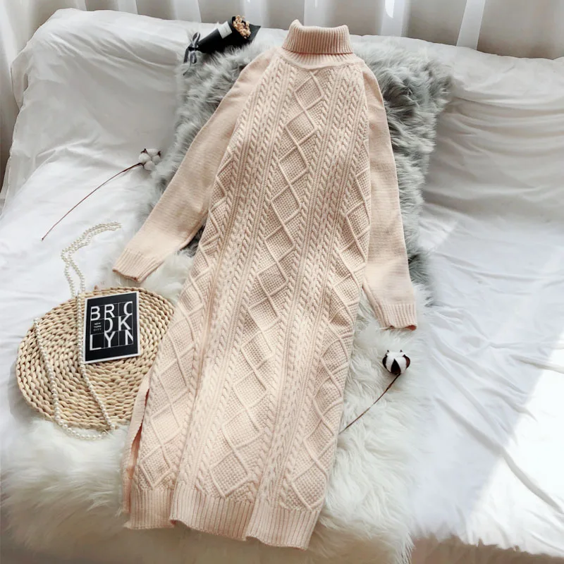 Женское трикотажное платье-свитер с высоким эластичным воротником, элегантное блестящее прямое платье, осень 2019