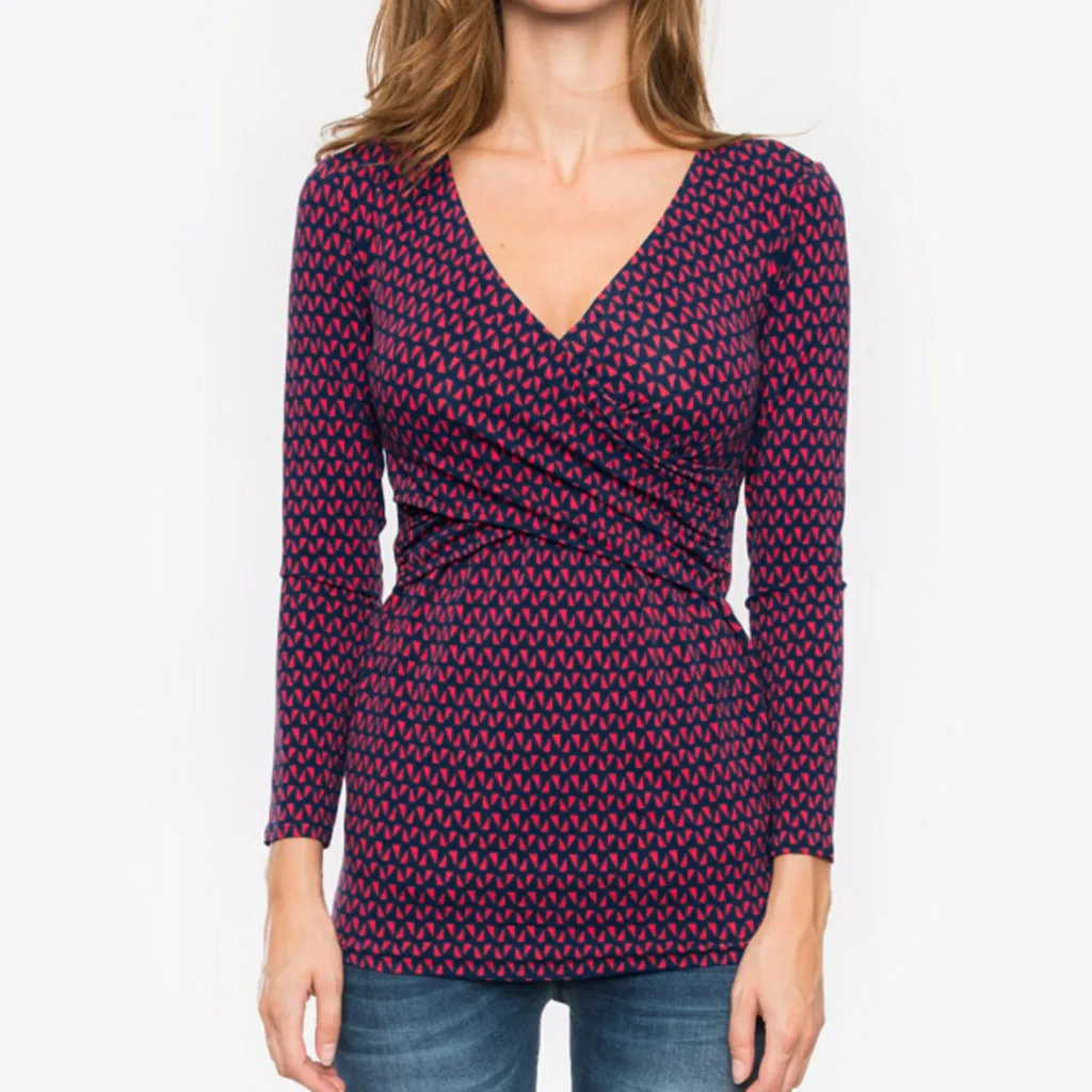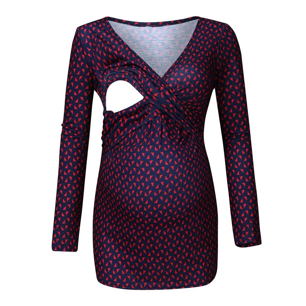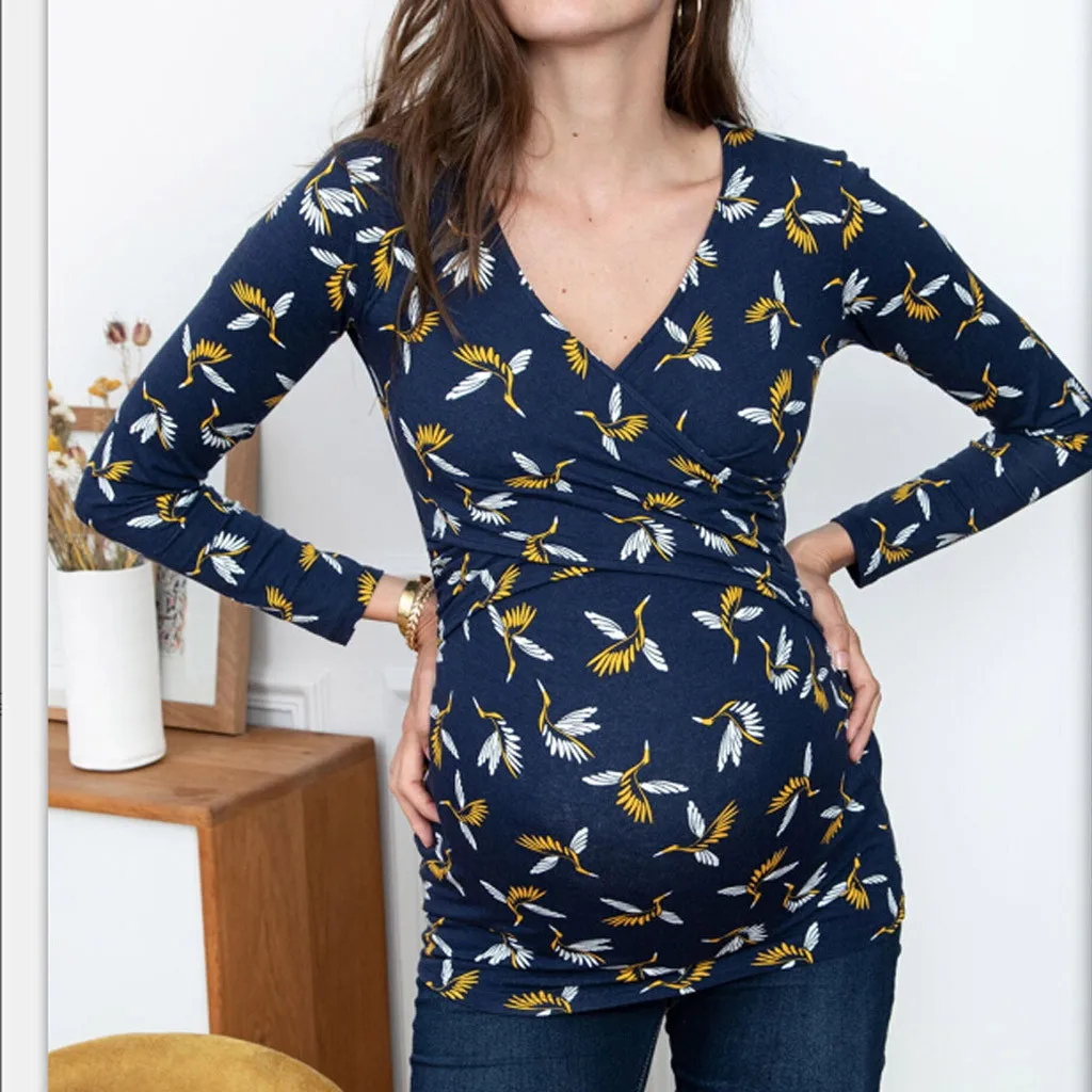 Женская блузка с рюшами, длинным рукавом и v-образным вырезом для беременных