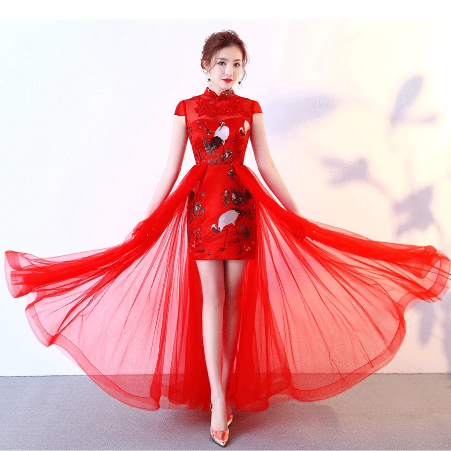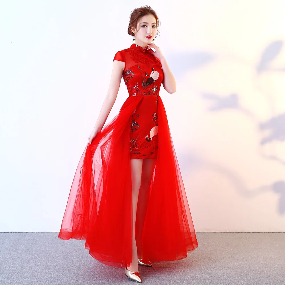 Женское короткое вечернее платье розовое китайское Восточное свадебное