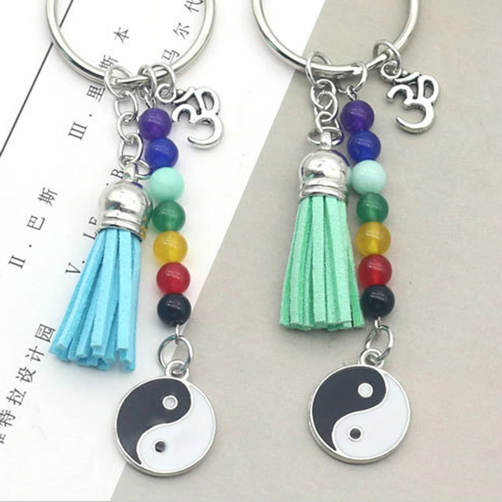 Название продукта: модные 7 Чакр бусины подвеска-ом брелок для йоги разноцветные кисти эмаль Taiji брелоки для женщин сумка аксессуары молитва llaveros