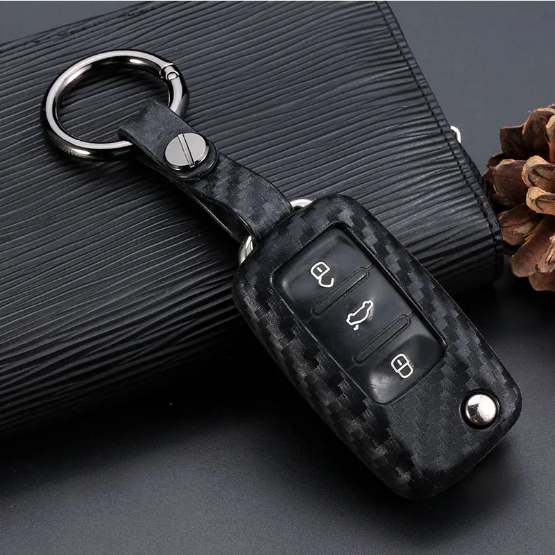 Автомобильный Стайлинг автомобиля углеродного волокна цвет оболочки чехол для ключей для Защитные чехлы для сидений, сшитые специально для Volkswagen Polo Tiguan VW Passat для крышка Skoda аксессуары