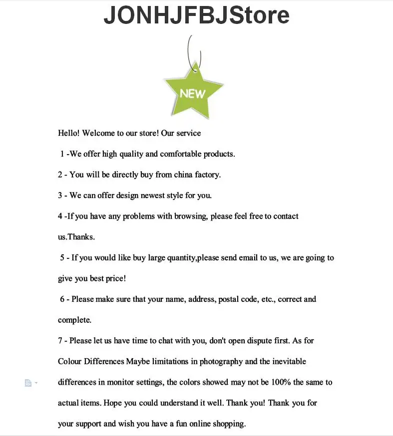 Советы Оплата 1. Мы принимаем paypal 2. Оплата должна быть получена в течение 7 дней после окончания аукциона. Пожалуйста, отмените заказ, если вы не собираетесь покупать. Неоплаченные товары будут проданы на AliExpress для как товары неплатежеспособных заказчиков. Адрес 1. Мы отправим товар только на ваш подтвержденный адрес paypal, поэтому, пожалуйста, убедитесь, что ваш адрес доставки верен, прежде чем вы покупаете товар. 2. Покупатель должен отправить другой адрес (не подтвержденный paypal адрес), прежде чем купить товар. Время доставки/время доставки Мы стараемся сделать все возможное, чтобы отправить в тот же день для оплаты, очищенной до 5,00 PM (тихоокеанское время), в противном случае мы отправим в рабочие дни. Возврат и замена товара Мы принимаем обмен/замену товара в течение 30 дней после получения покупателем товара. Покупатель оплачивает стоимость обратной доставки независимо от любых причин. Никаких исключений. Мы обработаем возвращенный товар в течение 7–14 дней после его получения. Мы осуществляем замену товара только в том случае, если он находится в том же состоянии, в котором был отправлен. Никаких исключений. О отзывы Если, получив товар, вы остались им довольны, пожалуйста, оставьте положительный отзыв и поставьте оценку продавцу в 5 баллов. Мы поставим оценку 5 баллов DSR отзывы для вас. Если у вас есть вопросы или вы не удовлетворены своей покупкой, пожалуйста, свяжитесь с нами через сообщение, и мы сделаем все возможное, чтобы решить эту проблему. Пожалуйста, не оставляйте нейтральные или отрицательные отзывы без связи. Если у вас есть какие-либо вопросы, пожалуйста, не стесняйтесь связаться с нами через "задать продавцу вопрос", мы стараемся сделать все возможное, чтобы ответить вам как можно скорее, из-за большого объема ежедневных входящих и часовых поясов, мы не можем ответить вам немедленно. пожалуйста, дайте нам 1-2 рабочих дня для ответа.
