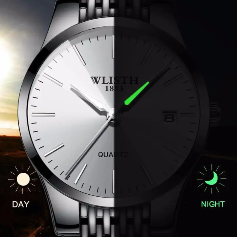 WLISTH модные повседневные мужские часы 3 бар водостойкий браслет из нержавеющей стали Кварцевые наручные часы Полный календарь Relogio Masculin