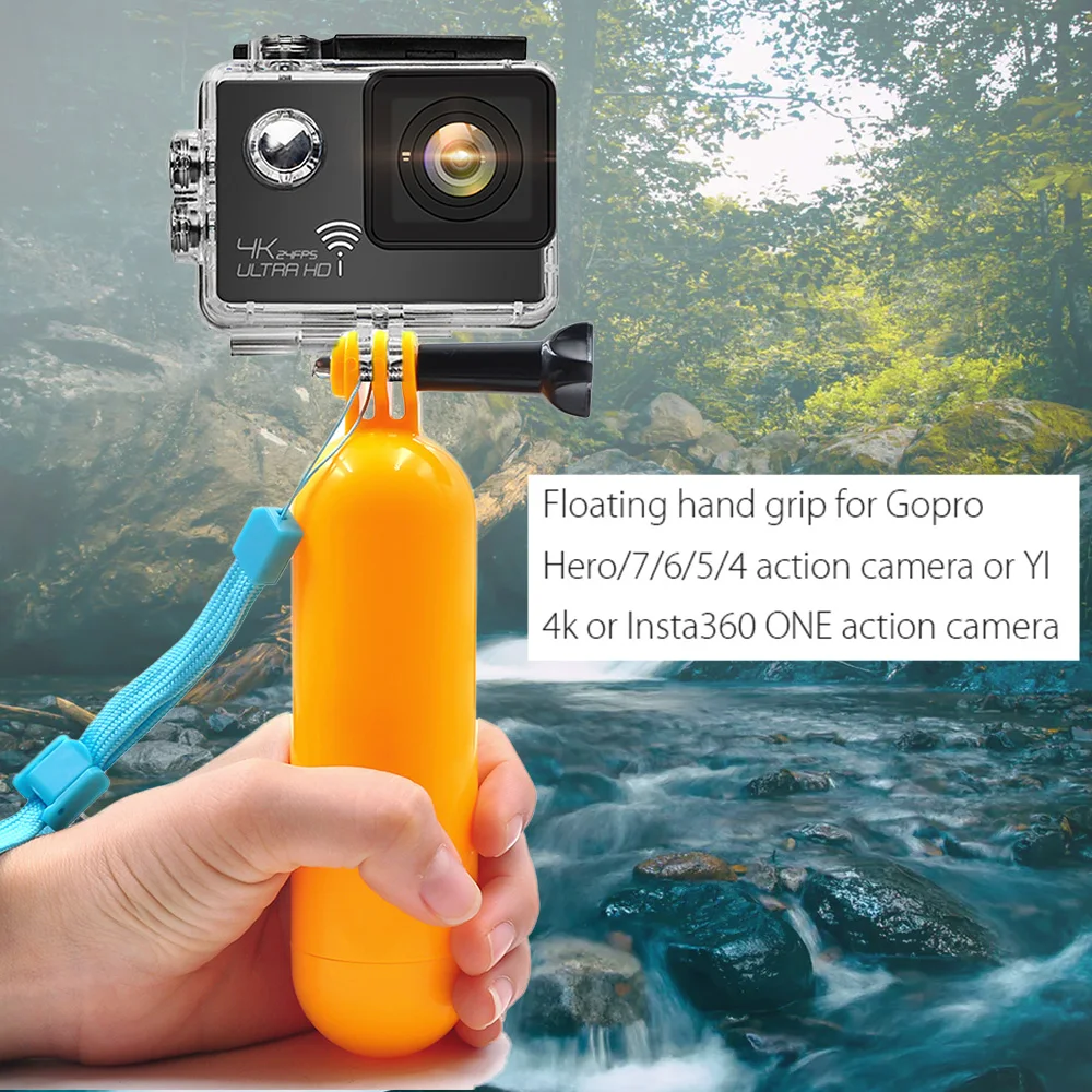 Плавающая рукоятка удерживает камеру и аксессуар на поверхности воды и предотвращает ее утопление.