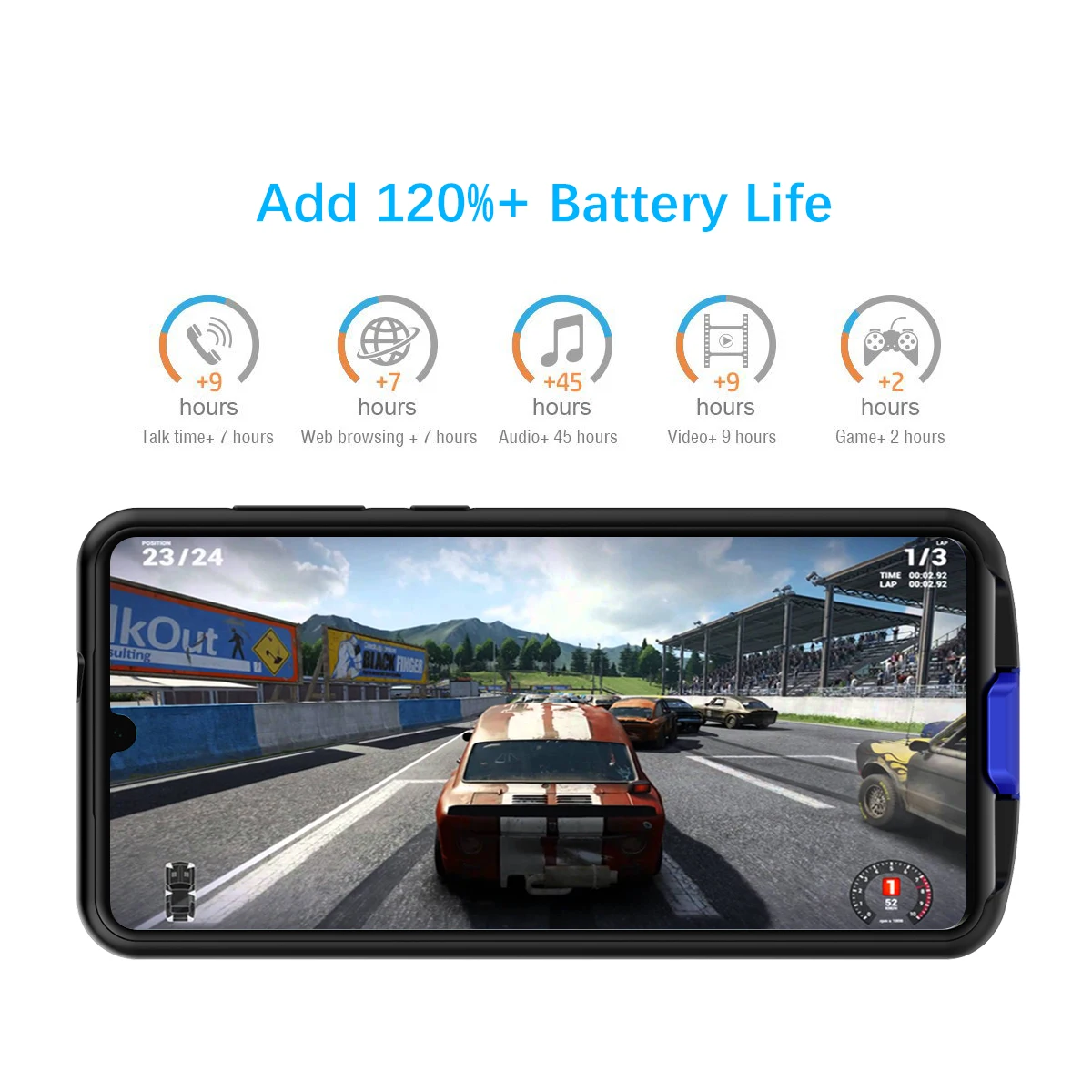 Зарядка и защита 2 в 1: обеспечивает емкость 5000 мАч с высококачественным материалом для защиты вашего телефона от царапин, грязи и других ежедневных разрывов.