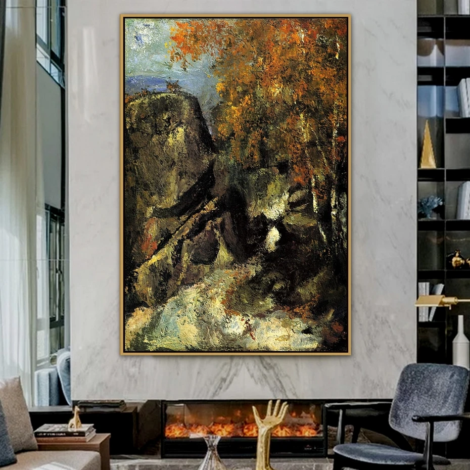 Дизайн:Деревья, небо,Камни в лесу Популярный старый мастер французский пост-импрессионист художник пол Сезанн Репродукция Живопись дизайн художественное оформление холст художественное роспись печать.