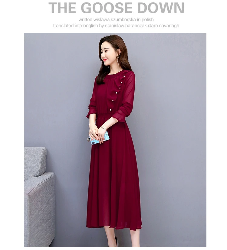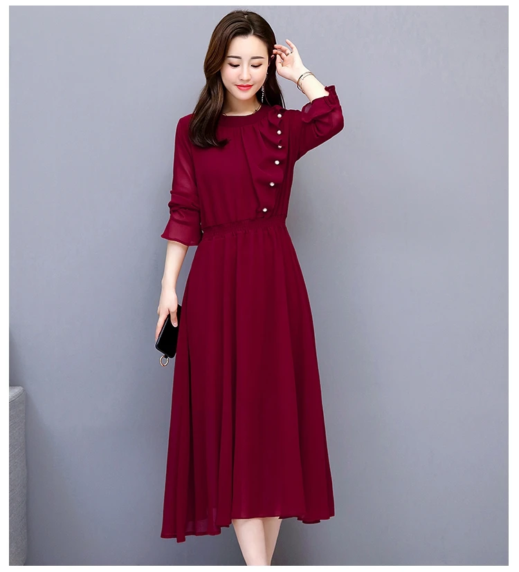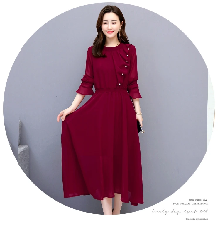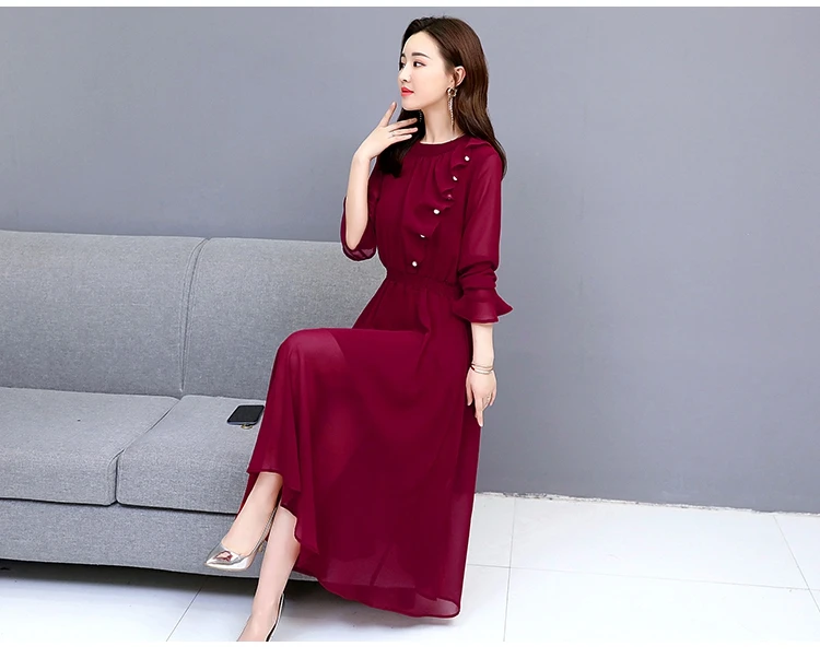 Платье женское длинное с коротким рукавом и отложным воротником 2019|Женские