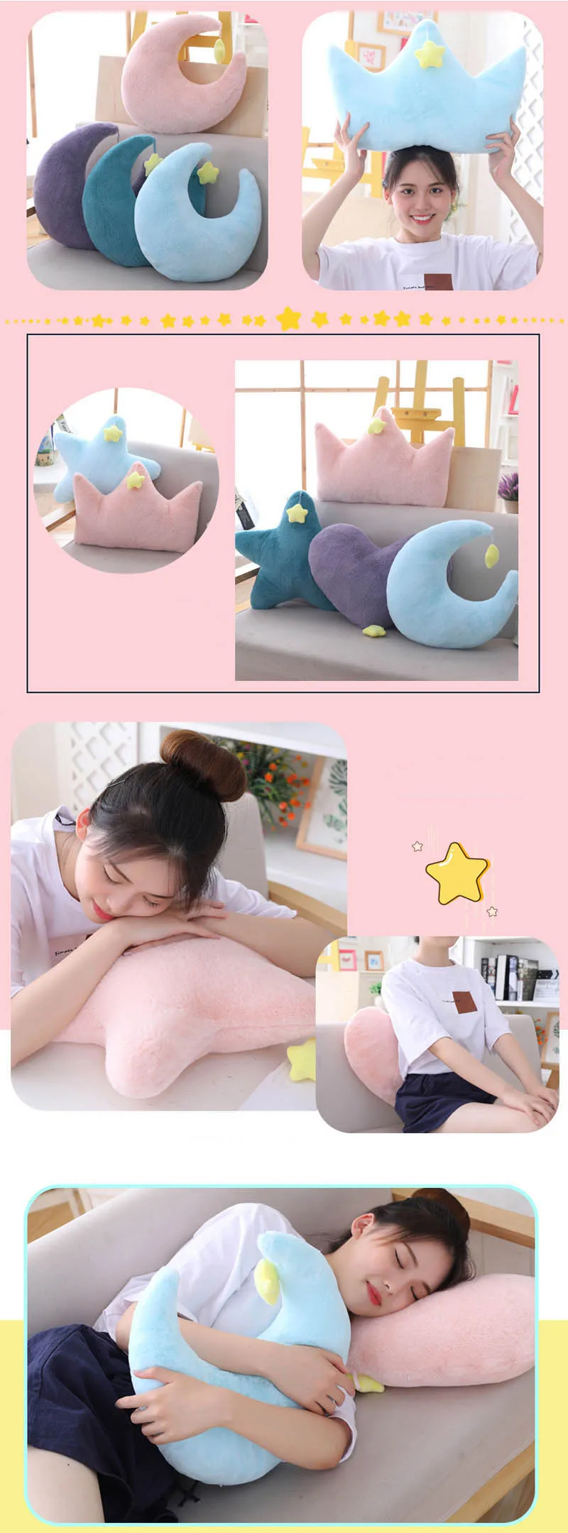 Короткая плюшевая подушка, мягкая пушистая Подушка, сердцевина, звезда, луна, корона, форма сердца, мягкая игрушка для сна, украшение детской комнаты