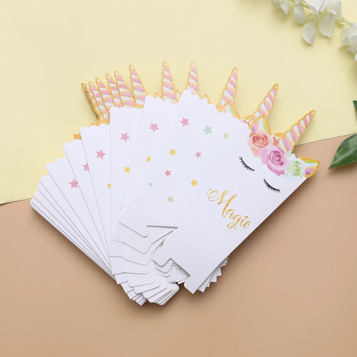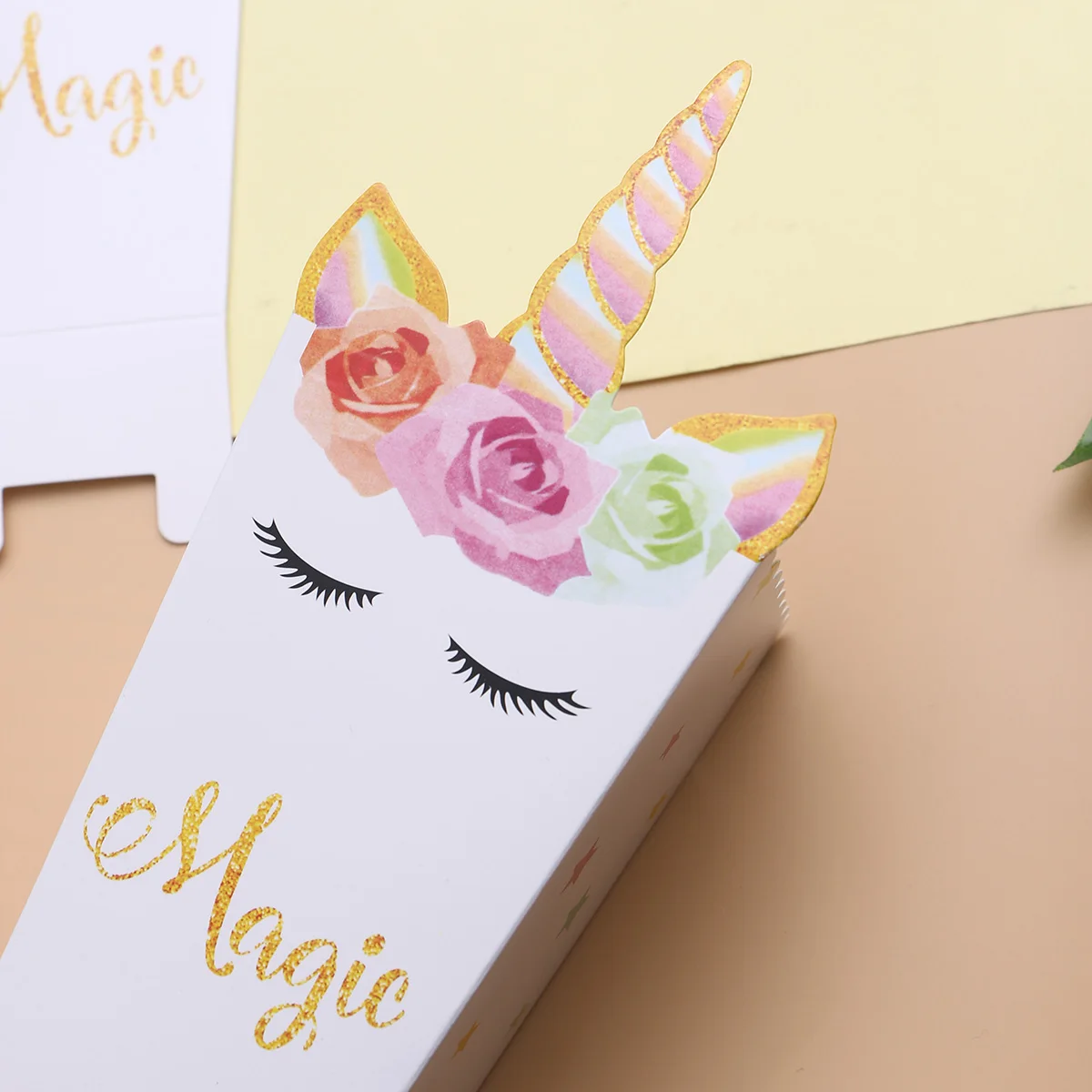-Дизайн радужного единорога делает эти бумажные коробки более очаровательными и привлекательными.