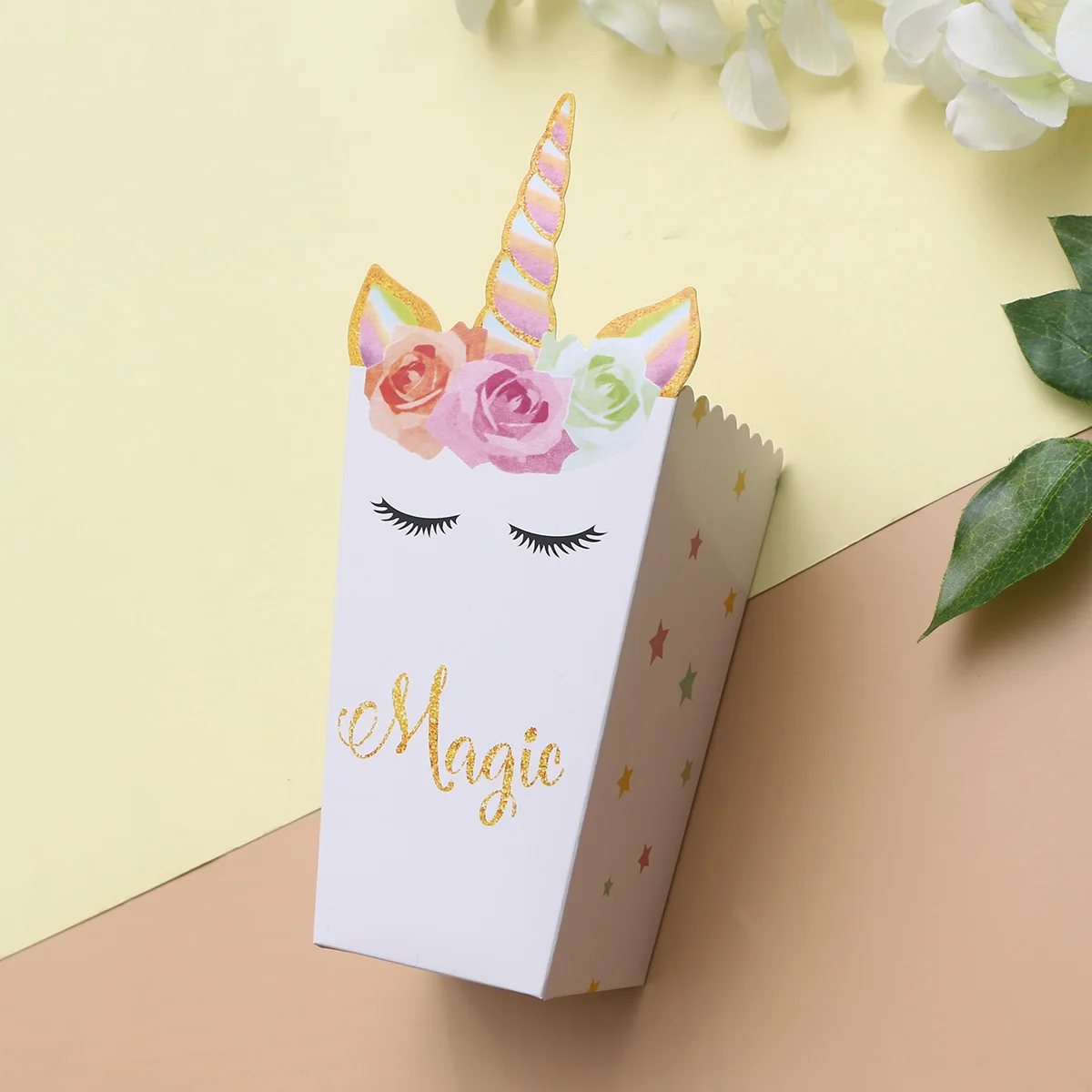 36 шт мультяшный Радужный Единорог попкорн мешочки, принадлежности для праздника полукартон коробки для попкорна контейнер для полдника держатель для детского кинотеатра день рождения