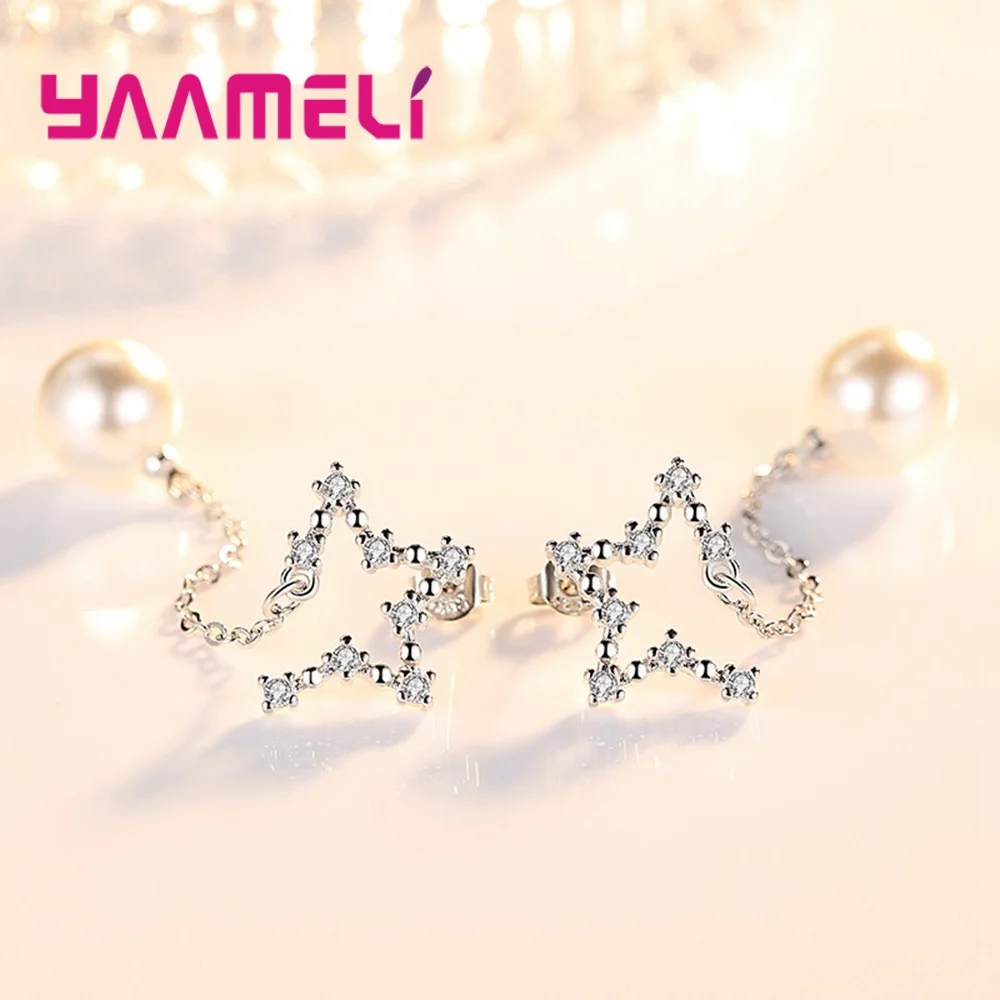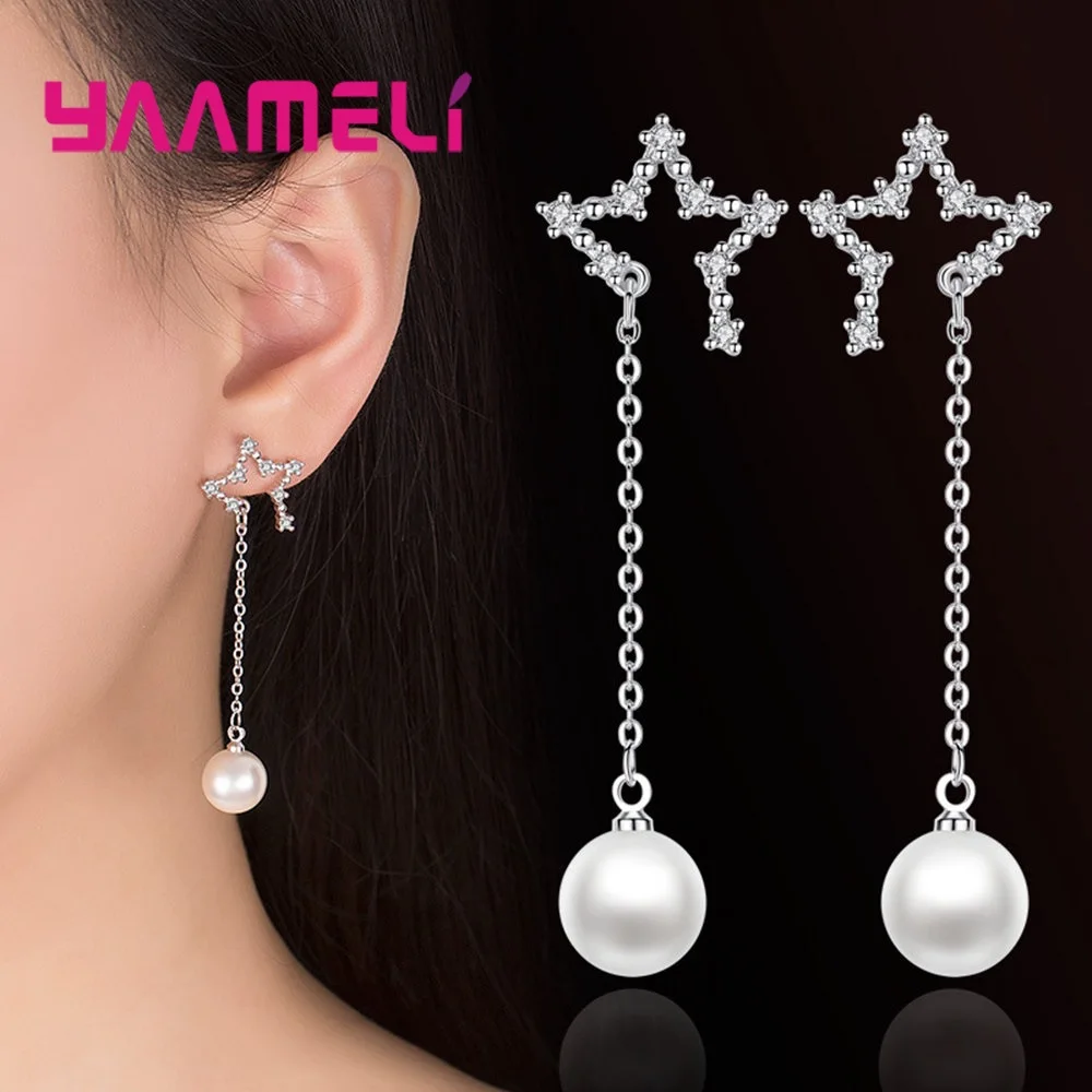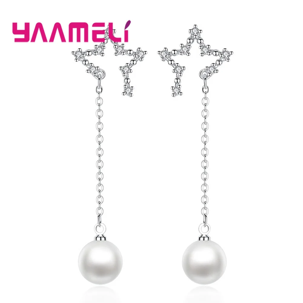 Хорошая распродажа, Женская Большая подвеска с круглой жемчужиной, висячие серьги/блестящий кубический цирконий, 925 пробы, серебро, помолвка/Свадебные украшения