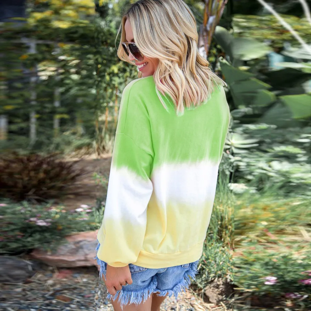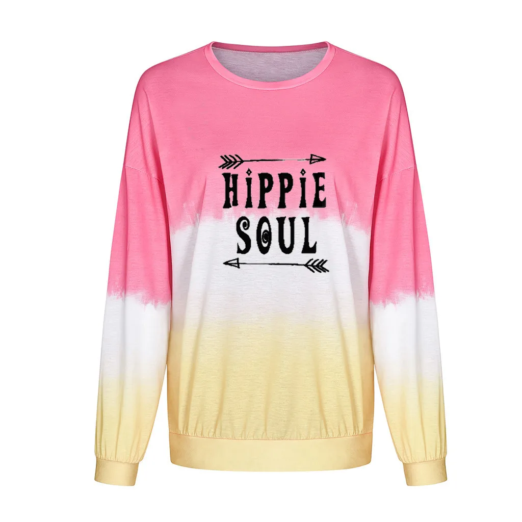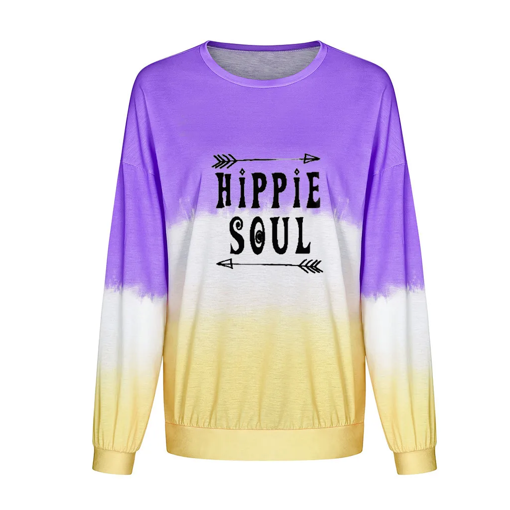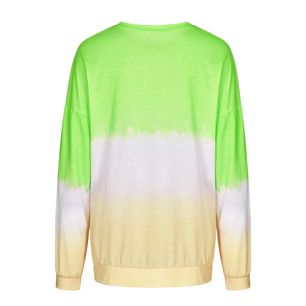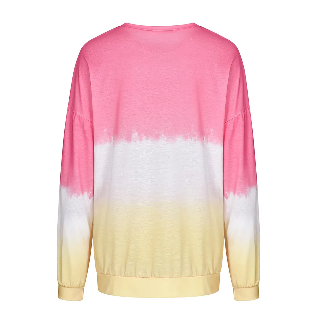 Женская Повседневная Толстовка с круглым вырезом и градиентом контрастного цвета с длинным рукавом
